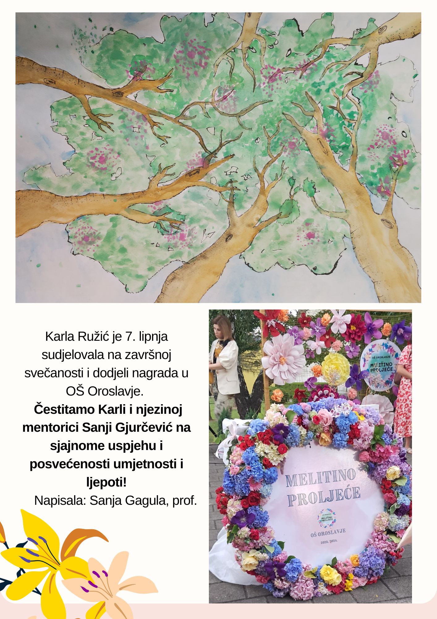 Učenica Sara Marija Kordić postigla odličan uspjeh na likovnome natječaju „Ples boja i ritma“