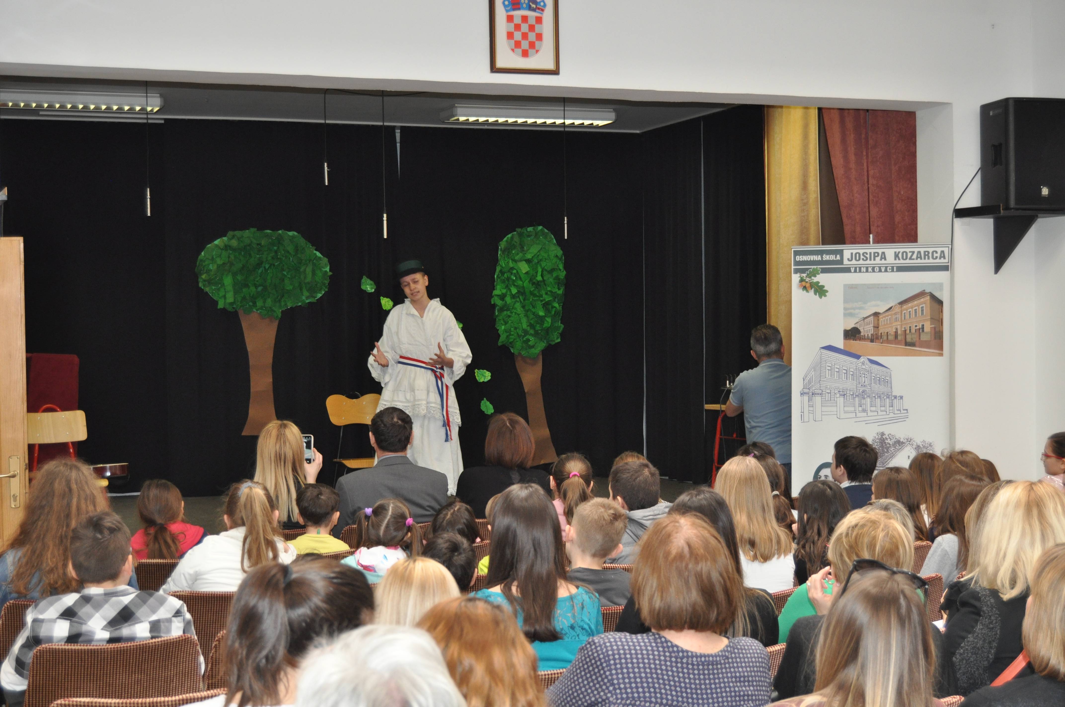 U svečanom dijelu programa prvi je nastupio učenik Jakov Jozinović koji je izveo Kozarčev monolog iz "Slavonske šume", mentorice Jelene Cvrković, potom su učenici 4. a izveli dramsko-scenski nastup pod nazivom: "Pjesma za svu djecu svijeta", mentorice C. Cile Majstorović. Kraj svečanog dijela programa uveličao je školski zbor pojačan flautistima koji su prezentirali splet slavonsko-posavskih pjesama i plesa, mentorice Zdenke Ivanković.