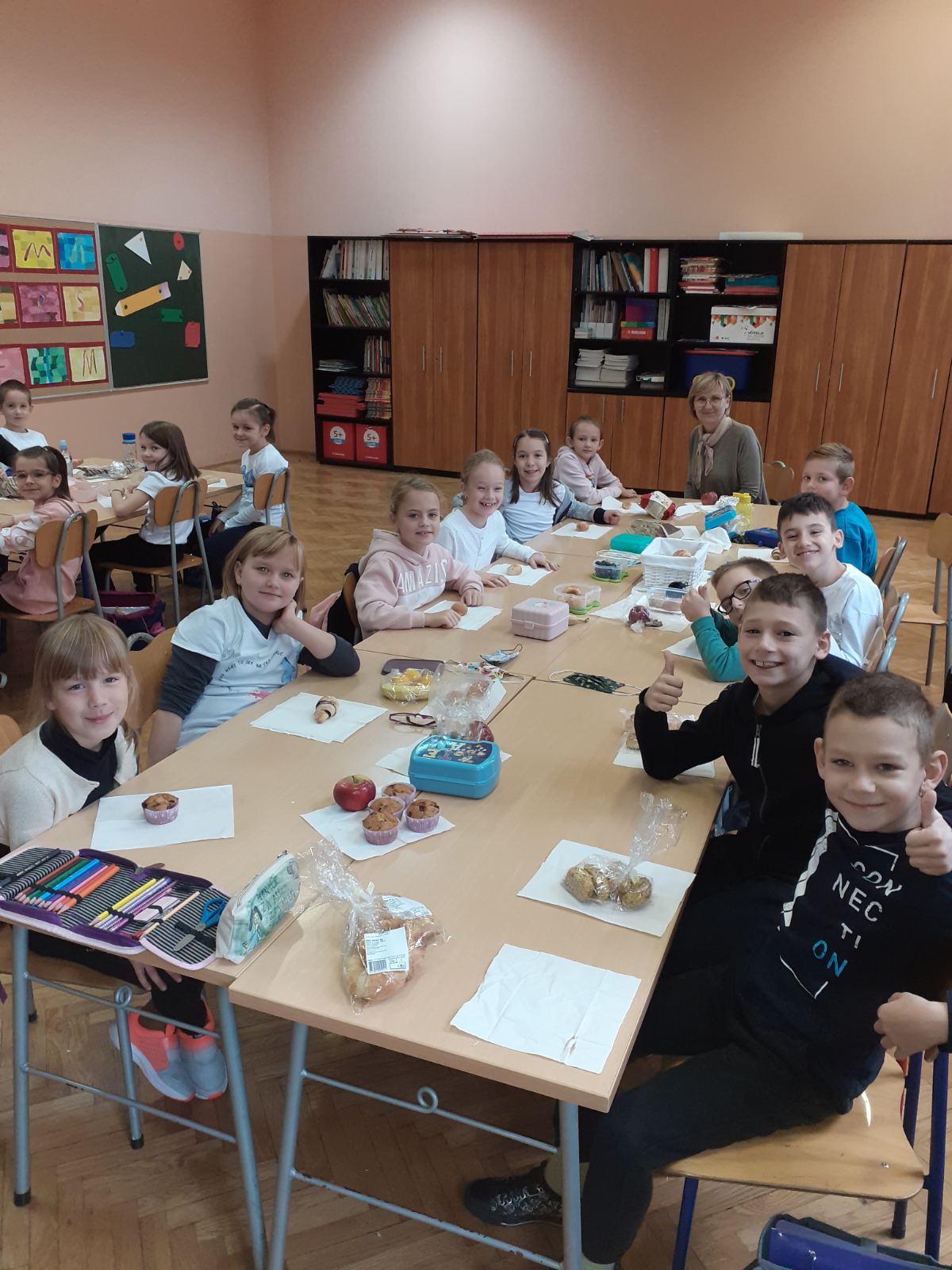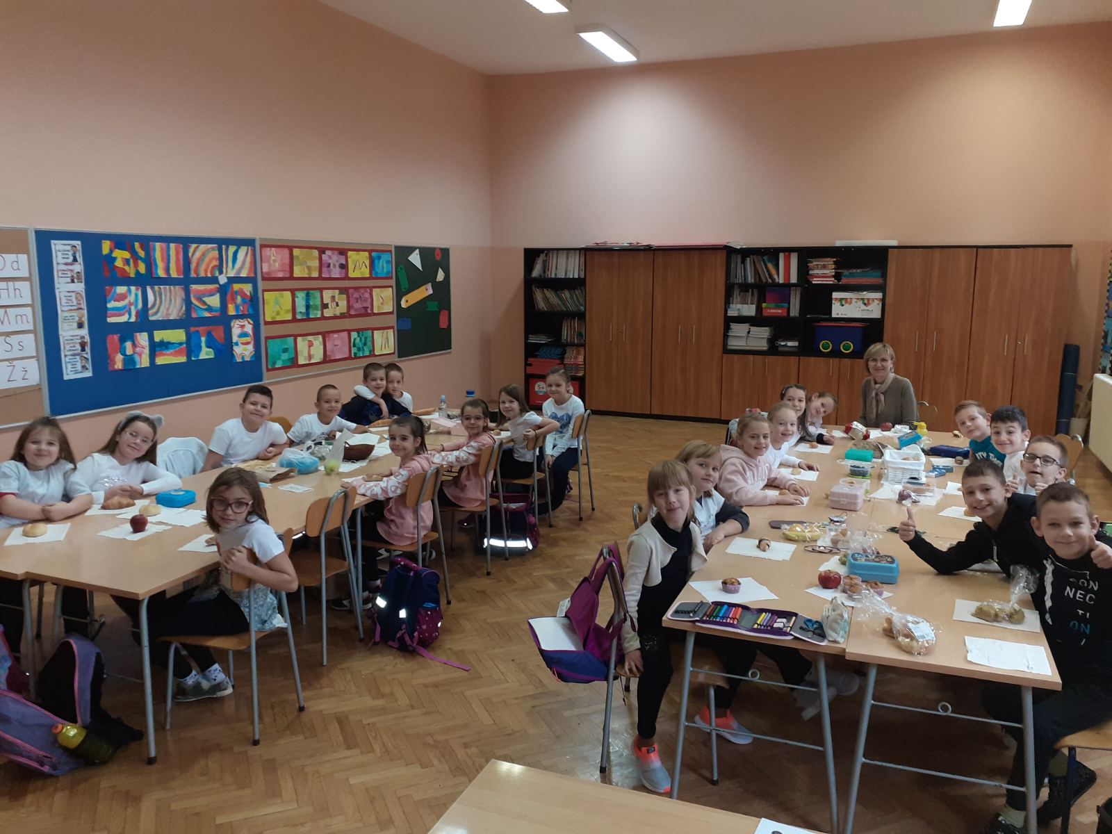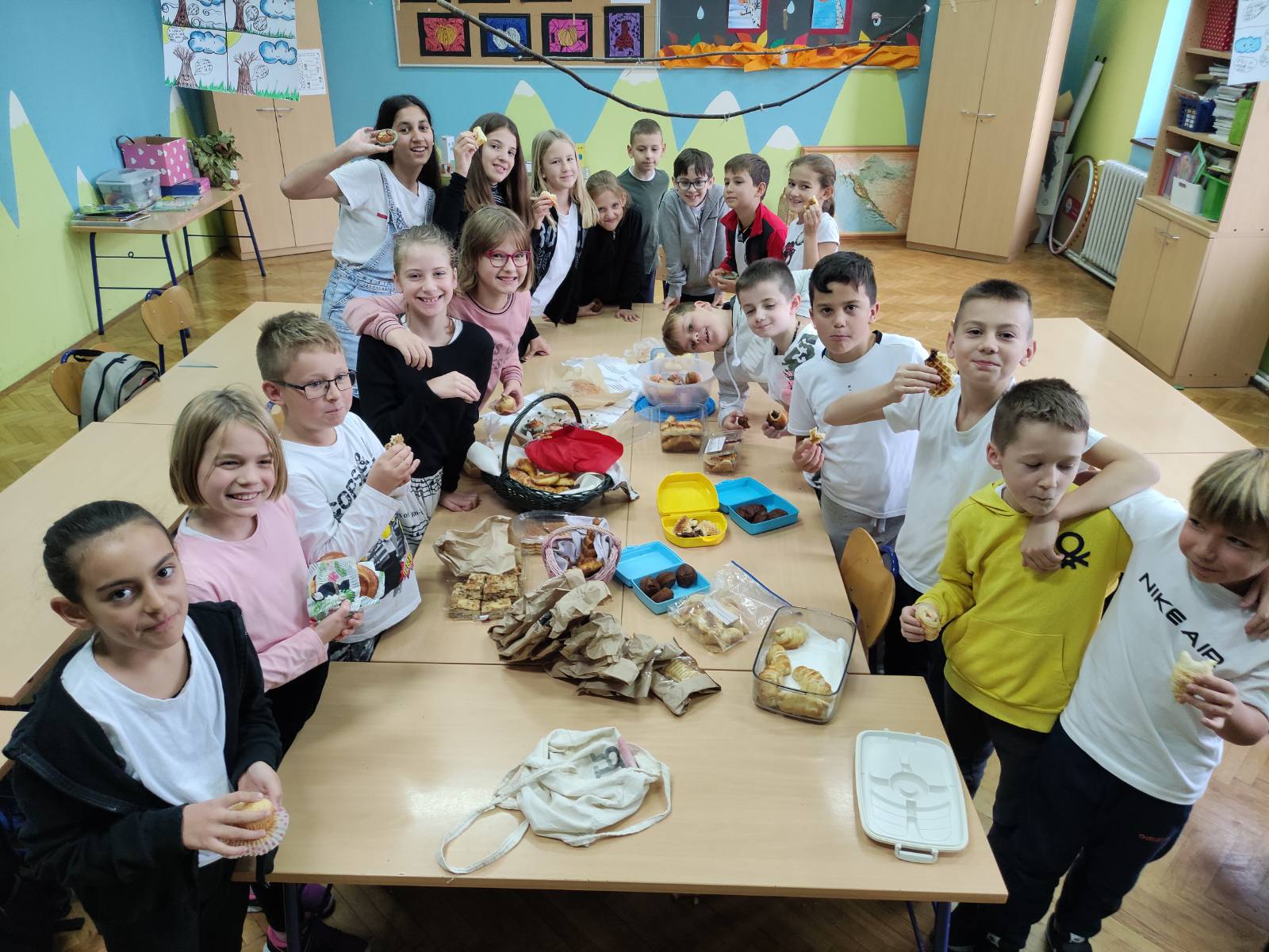 U petak 15. listopada 2021. školom se proširio slastan miris kruha, kiflica, kolača i voća. Učenici i učiteljice nižih razreda zahvalili su Bogu za hranu koju nam svakodnevno daruje i u svojim učionicama zajedno blagovali.