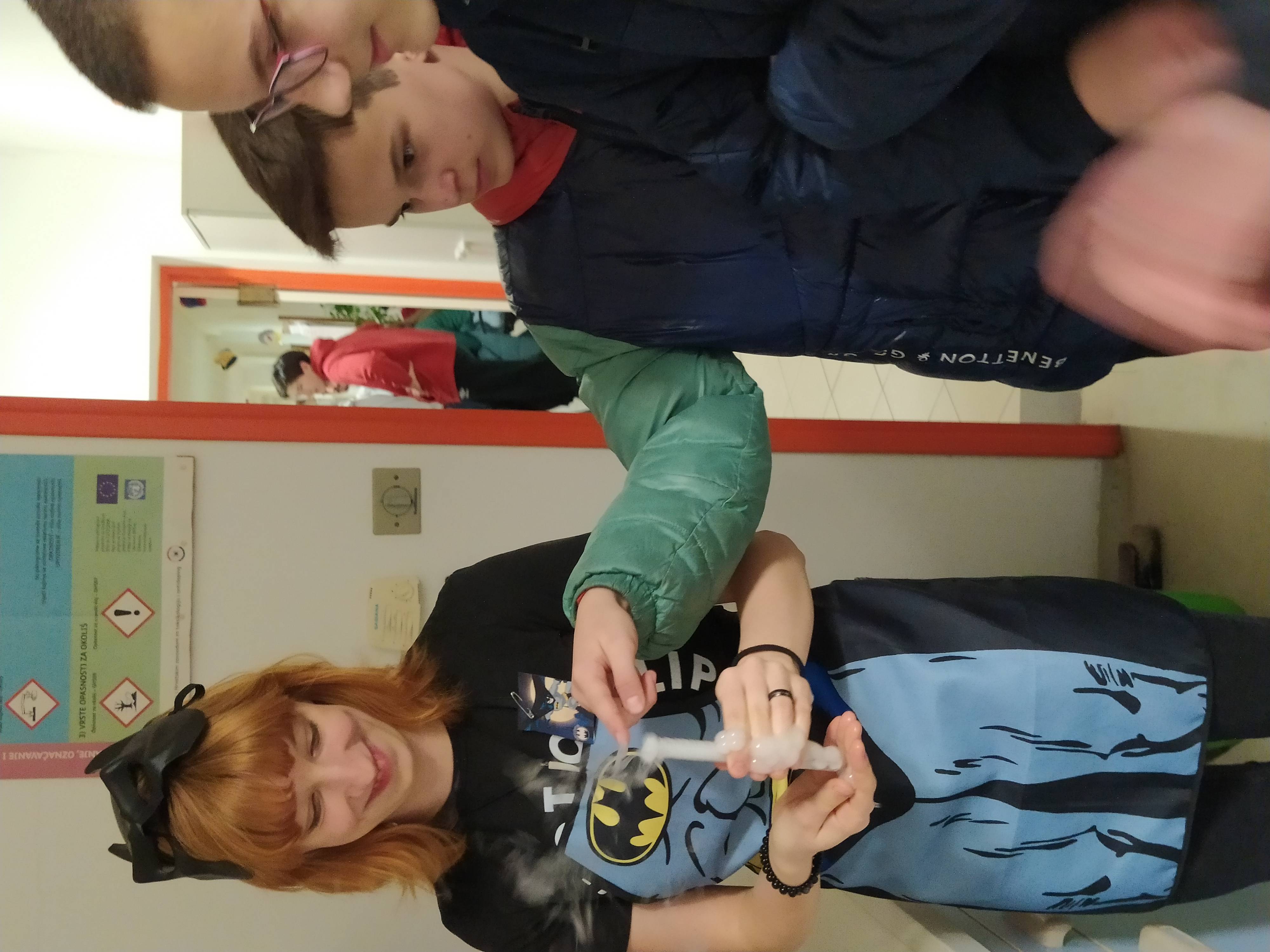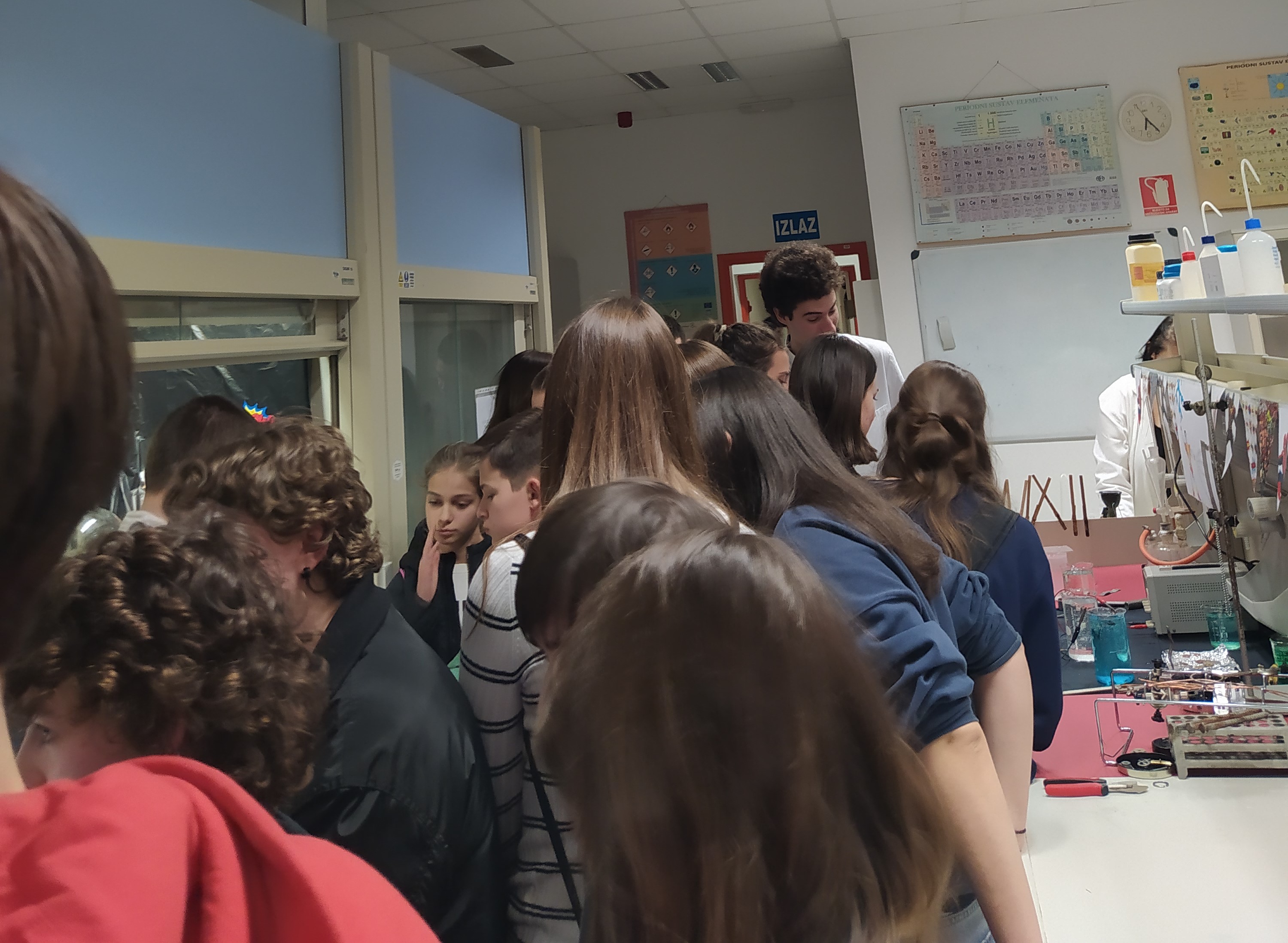 Najuspješniji učenici kemičari sedmih i osmih razreda u pratnji učiteljice kemije Darije Vištice, posjetili su zajedno s kemičarima Gimnazije i njihovim profesorima kemije 9. veljače Sveučilište u Osijeku-Odjel za kemiju. Kroz niz zanimljivih pokusa imali su mogućnost upoznati kemiju kao zabavnu znanstvenu disciplinu. Kako se nalazimo u vremenu karnevala studenti kemije maskirali su se u superjunake iz filmova Batman, Spiderman, Hulk i priredili čarobni „MasKEMbal“ uz šarene i zvučne aktivnosti prepun maštovitosti, znanja i zabave. Neki su sudjelovali i u pub kvizu s kemijskom tematikom a bilo je tu i karnevalskih krafni Naše učenice Lucija i Marina osvojile su i medalju. U dvorištu fakulteta dočekali su nas junaci iz stvarnog života koji imaju važnu zadaću zaštite i spašavanja ljudi, životinja, materijalnih i kulturnih dobara i okoliša u velikim nesrećama i katastrofama. Učenici su imali priliku pogledati unutrašnjost vatrogasnih, bolničkih kola ali i provozati se u terenskim quadovima. Puno učenika zainteresiralo se još više za kemiju koja im u budućnosti možda postane i životni izbor.