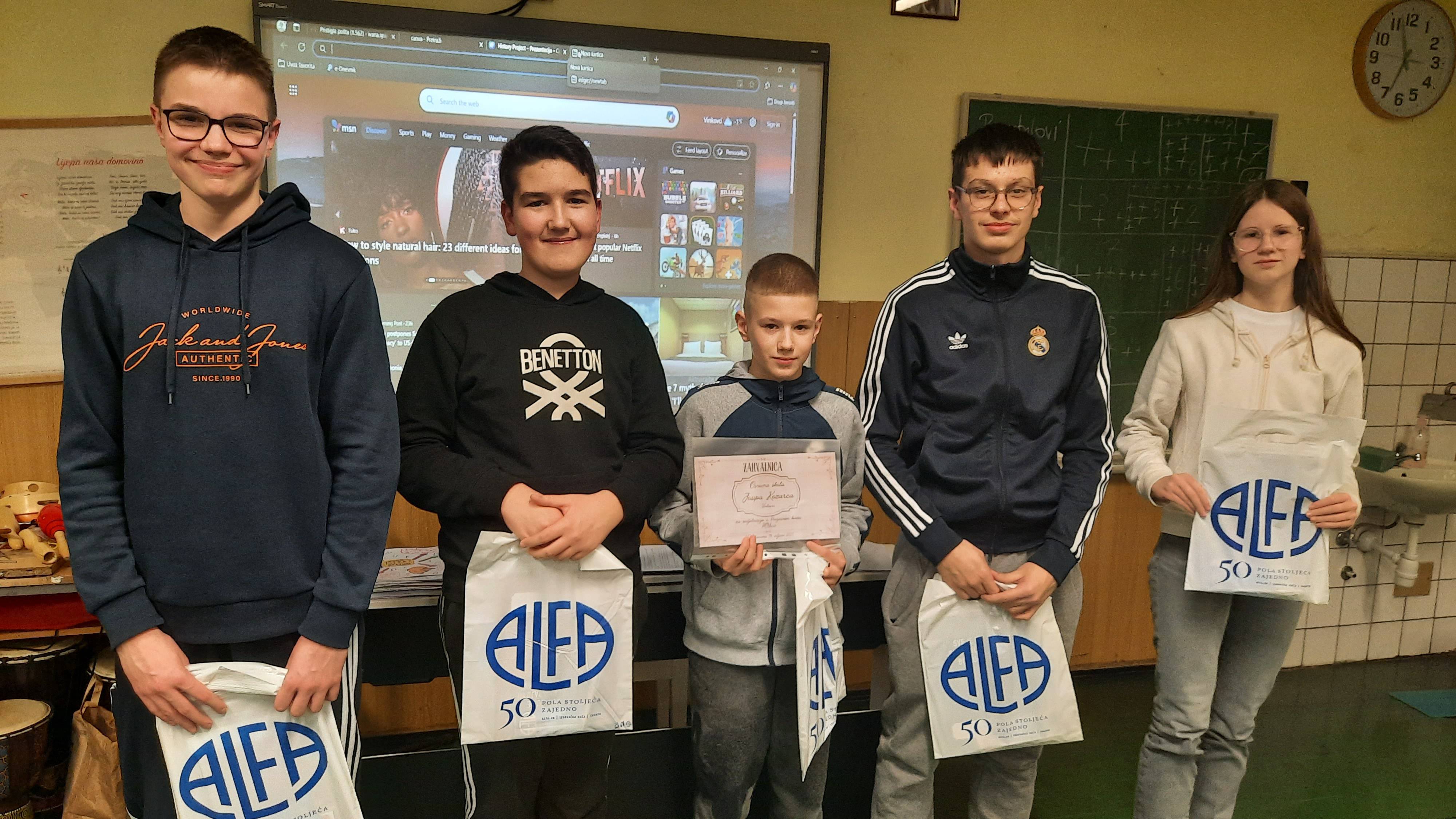 Učenici su bili podijeljeni po grupama od 5 članova. Našu školu su predstavljali Jerko Bebek (6. a), Ivan Župarić (7. b), Vito Babaić (8. c), Bruno Ćorić (8. b) i Maša Vidosavljević (8. a) pod imenom Treća sreća. Nakon što su učenici odgovorili na sva postavljena pitanja, zbrajali su se bodovi. Ekipa Treća sreća osvojila je drugo mjesto. Nadamo se da se i iduće godine družimo u ovakvom obliku i učimo povijest na malo drugačiji način.