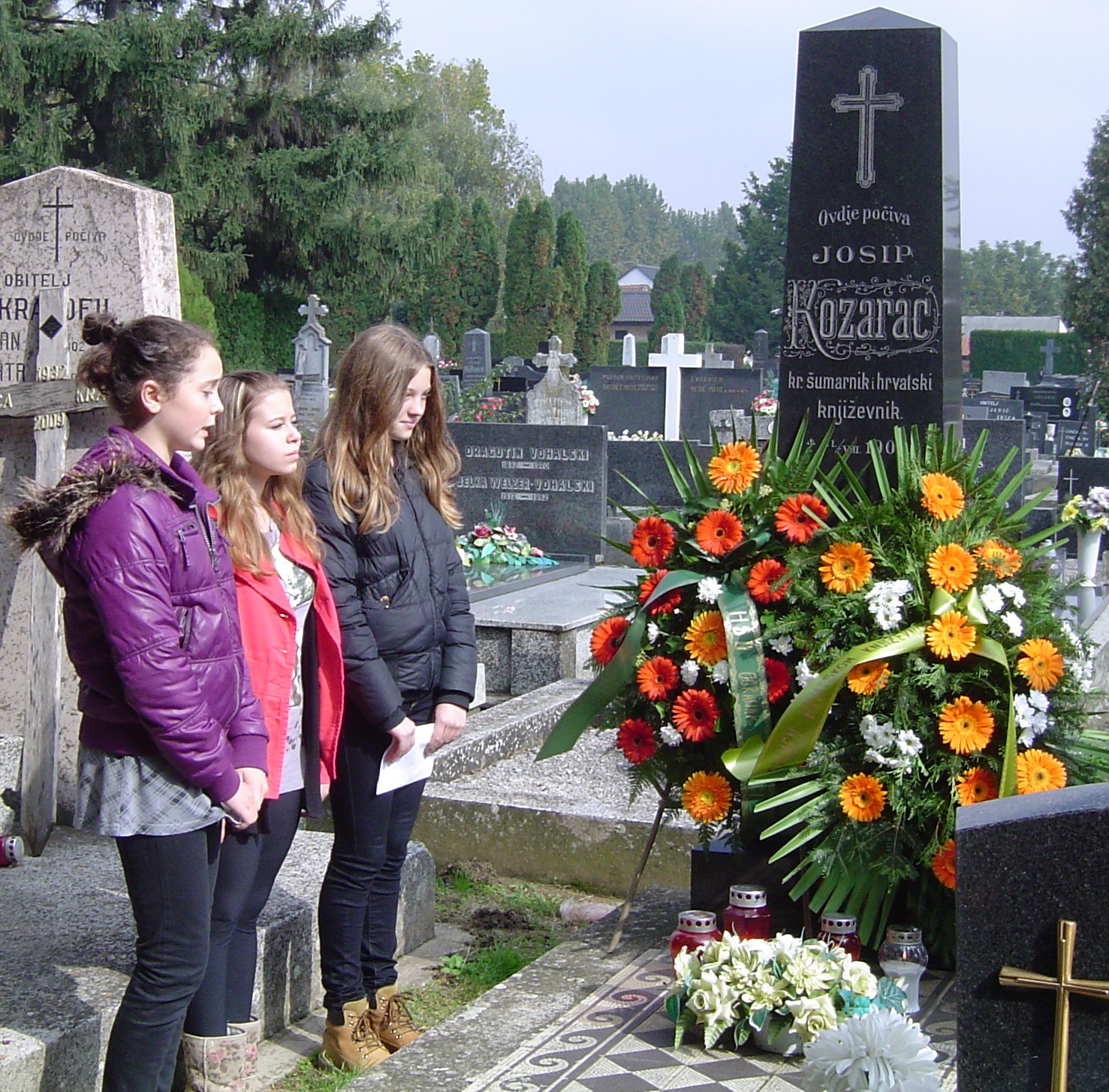 Učenice 7. b odjela Sara Šota, Laura Rupčić, Andrea Mudnić, Ella Pfaf i Barbara Kolak govorile su svečano i dostojanstveno na grobu Josipa Kozarca najljepše rečenice iz njegove pripovijetke Slavonska šuma, a na grobu Ivana Kozarca njegovu pjesmu: Milovo sam.
