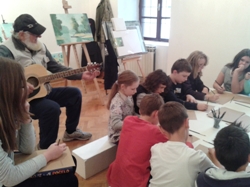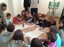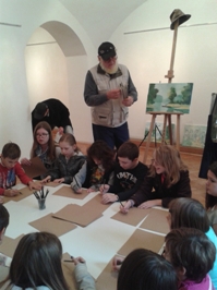 Ondje su promatrali izložbene likovne radove te sudjelovali u likovnoj radionici akademskog slikara Ivana Lončara Žana.
