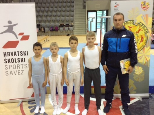 Najbolji gimnastičari naše škole Kristijan Fabijan (2. b), Karlo Radić (3. a), Luka Rajković (3. a) i Enio Vičević (6. c) postali su prošli mjesec prvaci Vukovarsko-srijemske županije te kao takvi bili u ponedjeljak, 2. svibnja 2016. u Osijeku na državnom Natjecanju školskih sportskih društava u gimnastici. Dječaci su ekipno osvojili 8. mjesto pod vodstvom učitelja Tjelesne i zdravstvene kulture Jakova Šikića. Ostale slike potražite u foto-galeriji.