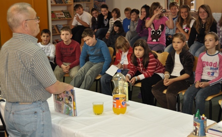 Čitajući pjesme, odgovarajući na mnogobrojna pitanja učenika, saznali smo puno o našem gostu. Sebe smatra solidnim i dobrim piscem, nema najdražu pjesmu, još uvijek je vješt s praćkom, volio je ići u školu, bio je odličan učenik, često se zaljubljivao i još mnogo toga. Svi smo se lijepo družili, nasmijali i zabavili.