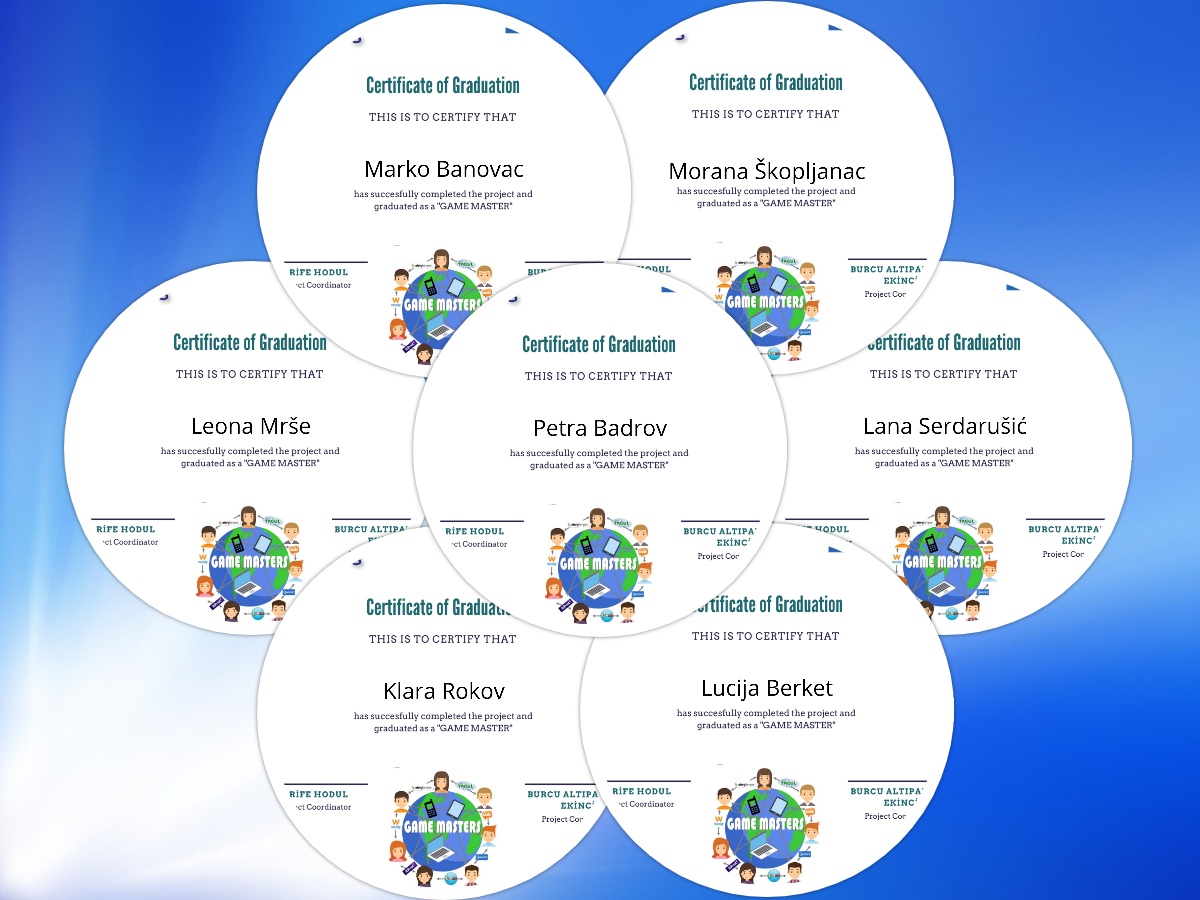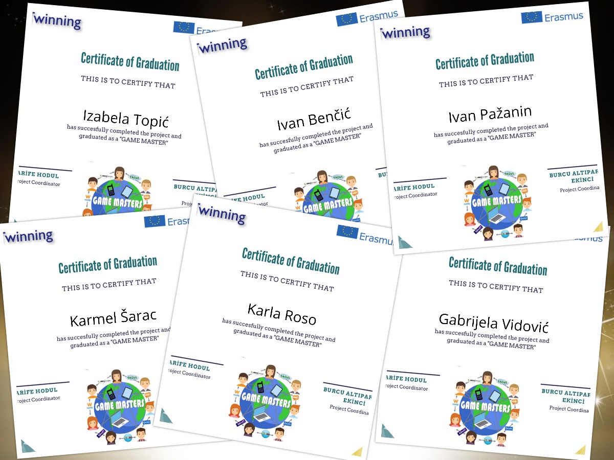 Kao nagradu za rad učenici su dobili Potvrde kojima su stekli naziv Game Master.