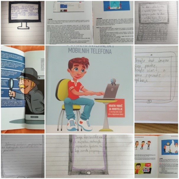 Obilježili su i Dan sigurnog interneta. Roditeljima smo podijelili knjižice o sigurnijem internetu, a učenici su imali zadatak na nacrtanom ekranu mobitela ili tableta ispisati poruku o sigurnom korištenju interneta. Radovi su izloženi na školskom panou.
