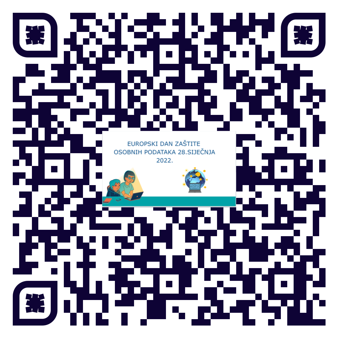 Za potrebe sata razrednika učiteljica engleskog i talijanskog jezika Tina Parać, izradila je prezentaciju o zaštiti osobnih podataka koju je podijelila kolegama. Istu možete pogledati OVDJE ili učitati na QR kodu u prilogu.