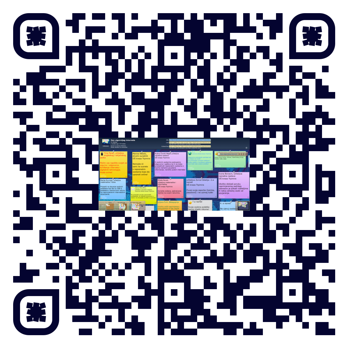 Naši učenici, učitelji i stručni suradnici ostavljali su poruke na digitalnoj lino ploči sa savjetom za sigurnije korištenje interneta. Njihove poruke možete pročitati OVDJE ili učitavanjem QRkoda.