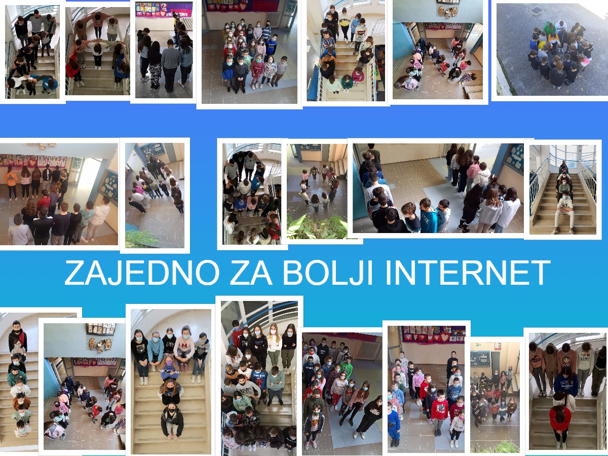 Naši učenici su s oduševljenjem prihvatili poziv 8.e razreda da položajem svojih tijela „ispišu“ slogan „ Zajedno za bolji Internet“.