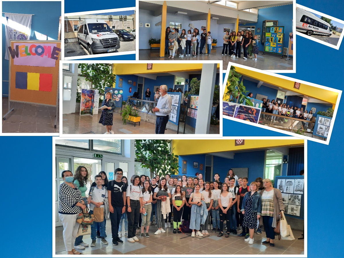 Posjet učenika i učiteljica iz Rumunjske u sklopu njihovog Erasmus + projekta „Europe on The Move“ 11. ožujka 2022. na poziv eTwinning ambasadora Nataše Ljubić Klemše i Tomislava Pavlovića, predstavila sam našu eTwinning školu. Izuzetna čast mi je bila govoriti o rezultatima nagrađenih eTwinning projekata koji su prepoznati na nacionalnoj, ali i europskoj razini, kao i o radu i vještinama svih učenika koji su u njima sudjelovali. Nedugo nakon predstavljanja naše škole iznenadio me poziv eTwinning ambasadorice Daniele Bunee iz Rumunjske koja je poželjela posjetiti našu školu. Na sjednici Učiteljskog vijeća predstavila sam kolegama plan posjeta gostijuiz Rumunjske koji je s oduševljenjem prihvaćen. Tako je dogovoren njihov posjet od 9.-11.5.2022. Više o posjetu pročitajte pod opširnije.