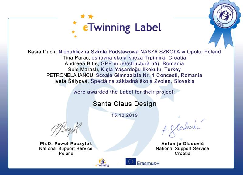 Nacionalna služba za podršku odobrila je još jedan eTwinning projekt pod nazivom Santa Claus Design kojeg je naša profesorica engleskog jezika Tina Parać osmislila zajedno sa kolegicom Basijom Duch iz Poljske. Na njemu će vrijedno raditi učenici 3.b razreda.