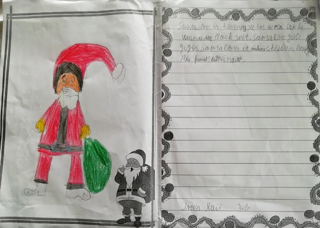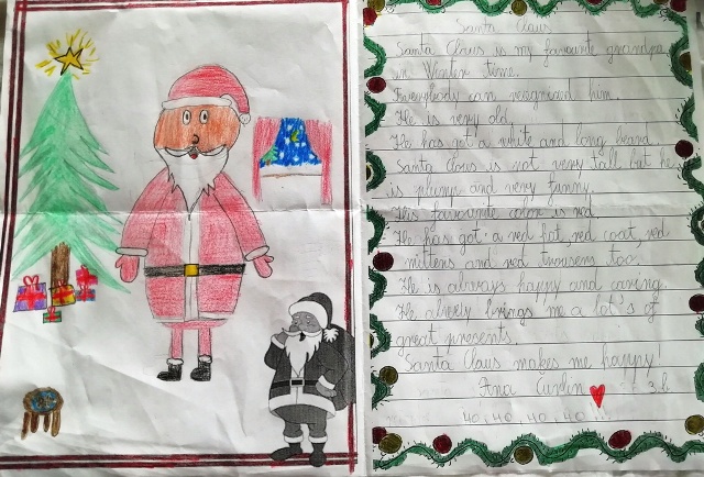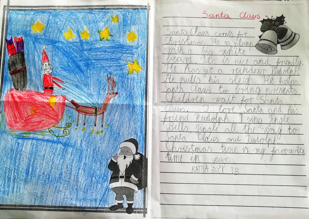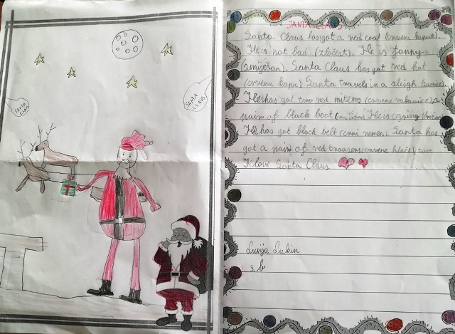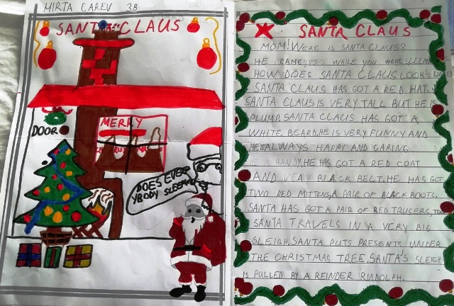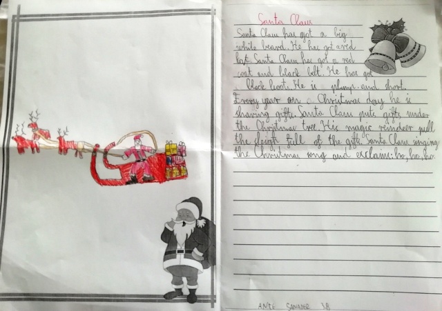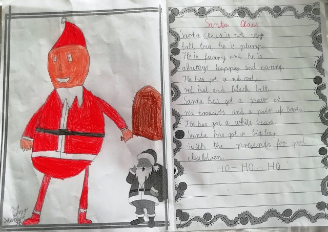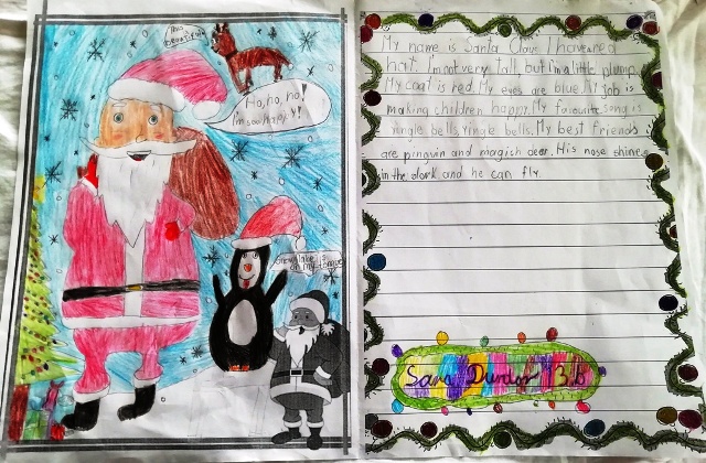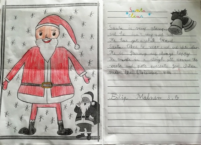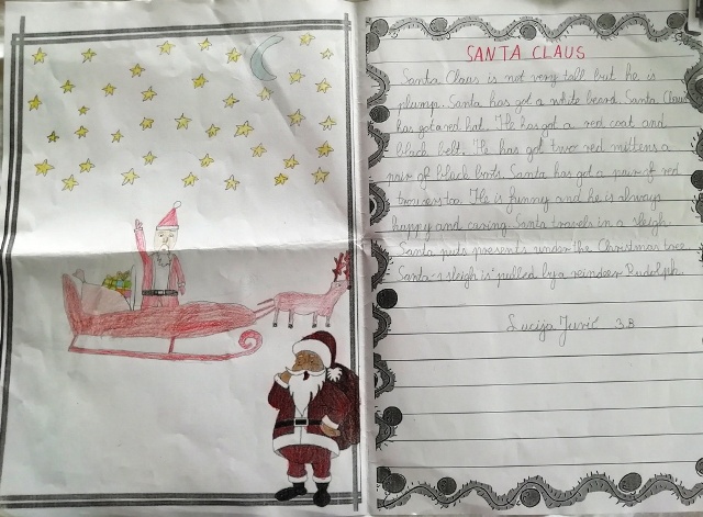U prvom dijelu projekta trebali su nacrtati djeda Božićnjaka i opisati ga na engleskom jeziku.