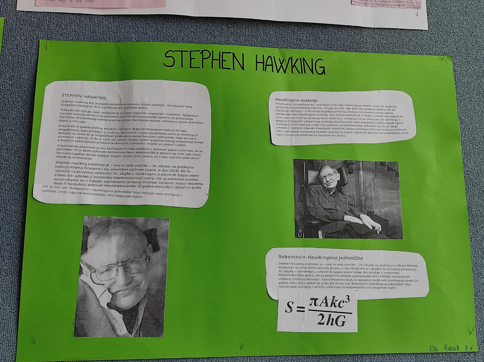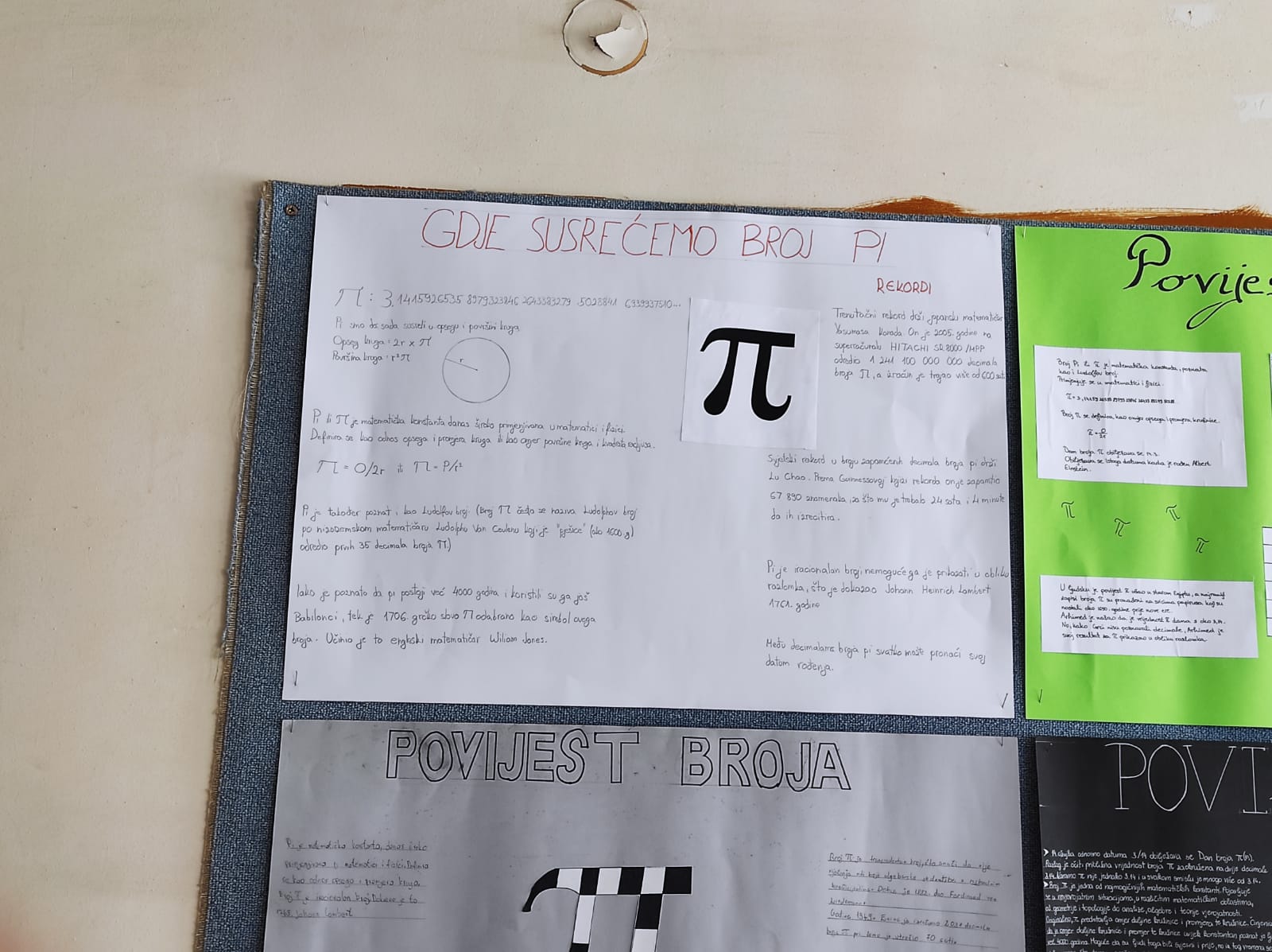 Učenici 8.c i 8.d razreda su sa svojom nastavnicom obilježili Međunarodni dan matematike i Dan broja Pi. Godišnja proslava kojim obilježavamo matematičku konstantu Pi održava se 14. ožujka jer su znamenke 3, 1 i 4 najznačajnije znamenke tog iracionalnog broja. Dan broja Pi obilježava se na različite načine, jedenjem pita, gađanjem pita, izrađivanjem različitih prezentacija o broju Pi, raspravljanjem o značaju broja Pi, natjecanjem u recitiranju znamenaka broja Pi. Na isti dan obilježavamo obljetnicu rođenja Alberta Einsteina i obljetnicu smrti Stephen Hawkinga. Naši učenici su izrađivali prezentacije i plakate o spomenutim znanstvenicima te o povijesnom razvoju istraživanja broja Pi i značaju broja Pi u matematici.