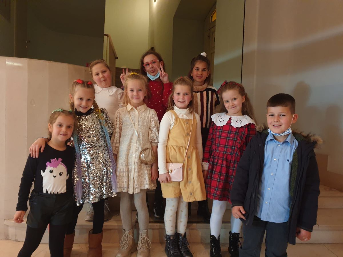 Ovo je prva godina da obilježavanje adventskoga vremena provodimo kao učenici i to učenici 1. e razreda. Sudjelovali smo u dvjema humanitarnim akcijama, humanitarna akcija „Djeca Kaštela za djecu Kistanja i drugih osiromašenih područja“ čiji je nositelj Gradsko društvo crvenoga križa Kaštela te humanitarna akcija „Moj dobri anđele“ čiji je nositelj naša škola OŠ kneza Trpimira iz Kaštel Gomilice. U akcijama smo sudjelovali prikupljanjem prehrambenih i higijenskih artikala te novčanih priloga. Dramska grupa 1. e r. posjetila je HNK Split i gledala baletnu predstavu Orašar – Ščelkunčik, koja je neizostavni dio predbožićnog vremena. Petar Iljič Čajkovski je skladatelj glazbe ovog najizvođenijeg bijelog baleta na svijetu. Učenici su doživjeli nešto novo, isprepleteno, a to su čarolija teatra i baleta. Za drage članove naših obitelji izrađivali smo božićne čestitke i ispisali ih svojim prvim rukopisom. To će im biti najtopliji poklon, koji će dugo godina čuvati. Jadranka Kovačević, učiteljica
