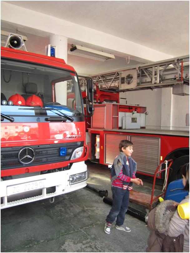 Na povratku smo svratili do Vatrogasnog doma u kojem nam je Andrej Kossjanenko učenik 3c razreda održao kratko predavanje o vatrogasnoj opremi, te o postupcima i načinima gašenja požara.