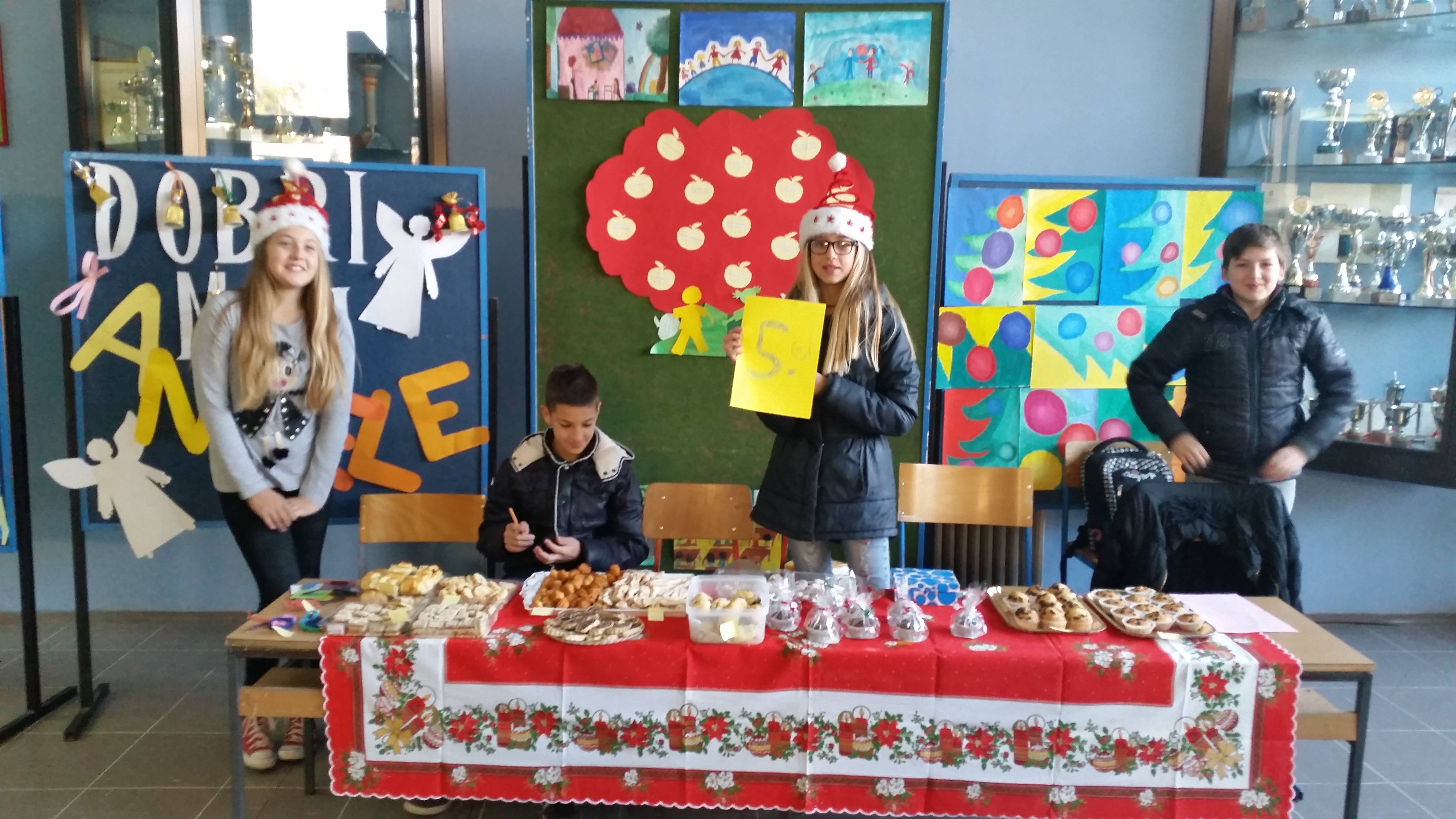 U školskom atriju učenici su svaki dan prodavali kolače, božićne ukrase i čestitke koje su napravili sami ili uz pomoć svojih učitelja i roditelja. Na taj način prikupljeno je 6 720 kuna!