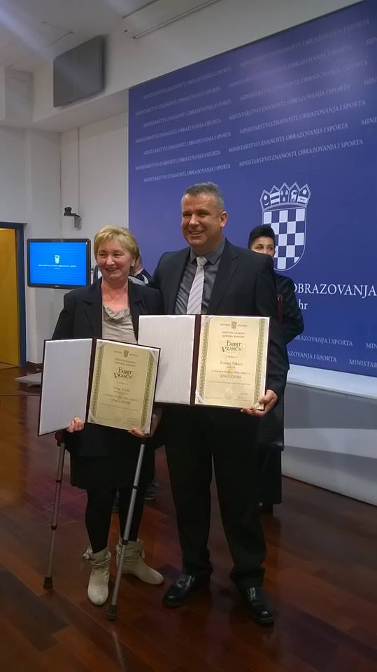 U ponedjeljak, 9. studenoga 2015.god. u Ministarstvu znanosti, obrazovanja i sporta održana je svečana dodjela Državne nagrade tehničke kulture "Faust Vrančić" za 2014. godinu. Dodijeljena je jedna nagrada za životno djelo, osam godišnjih nagrada pojedincima, jedna godišnja nagrada grupi pojedinaca te četiri godišnje nagrade udrugama tehničke kulture i drugim pravnim osobama. Ponosno objavljujemo da je nagradu primio i učitelj tehničke kulture iz naše škole prof. Zoran Vukić, za izniman doprinos razvoju tehničkog odgoja i obrazovanja građana u Republici Hrvatskoj, posebno mladih. više o ovome pogledajte pod opširnije: