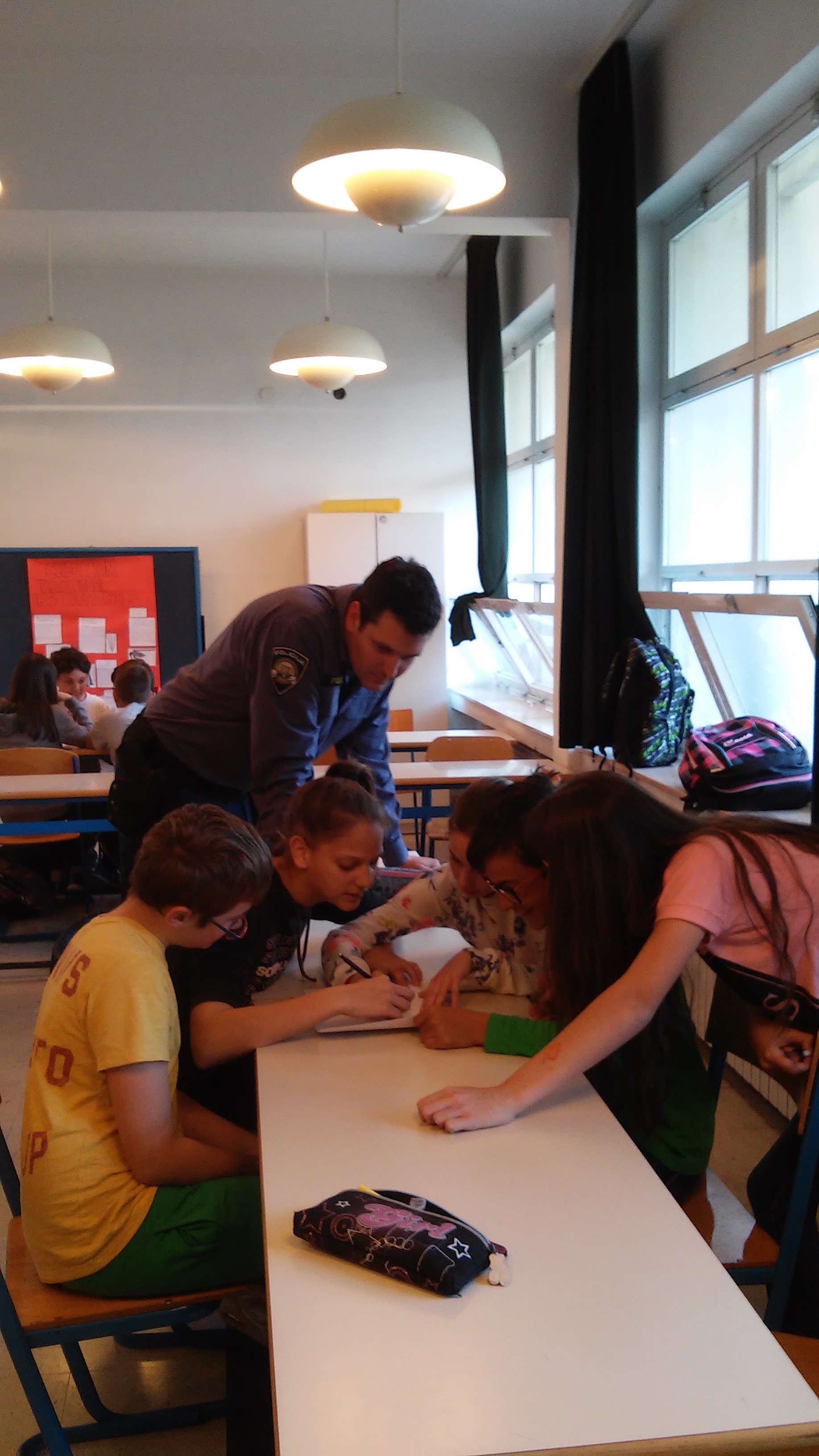 Ovih dana naš kontakt policajac iz Kaštel Starog, Renato Keran, održao je seriju predavanja našim petašima na temu Prevencija i alternativa. Učenici su se lijepo zabavili, sudjelovali u radionici (kao što se vidi u galeriji) i, nadamo se, ponešto i naučili. Zahvaljujemo policajcu Keranu i radujemo se njegovom slijedećem poučnom posjetu.