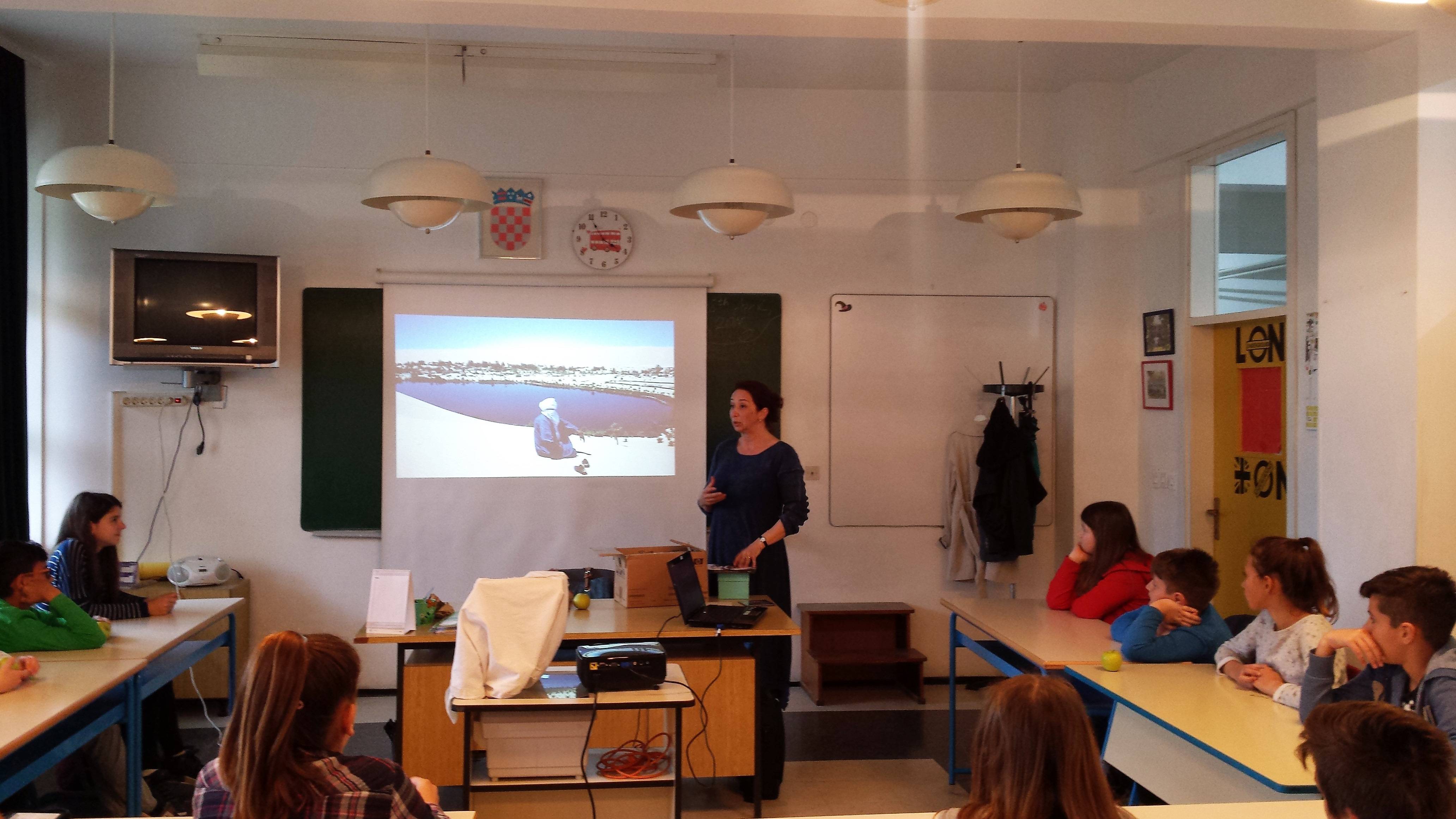 U petak 28.4.2017. 5.a razred je imao čast upoznati gđu Mejremu Reuter, autoricu knjige „Libija – priča o ljudima“. Ova osebujna žena je provela godine svog života diljem svijeta podučavajući djecu glazbi, scenskom pokretu i teatru. Dio svog života u Sahari (gdje je provela nekoliko godina i gdje se čak i vjenčala!) je podjelila i s nama. Kroz njenu super zanimljivu, interaktivnu radionicu „Saharsko blago“ imali smo priliku vidjeti, dotaknuti, omirisati daleke pustinjske krajeve i po prvi puta zaista osjetiti „zov putovanja“. Saznali smo puno toga o narodu Tuarega, pomogli smo pustinjskom cvijeću da otvori svoje latice, držali smo u rukama sjekire iz kamenog doba, vidjeli smo pretpovjesne crteže u pustinjskim spiljama na kojima muškarci peru kosu ženama(!), osjetili smo u ruci meteorite iz svemira, pustinjsku ružu, okamenjena drva i još puno toga (slike u galeriji). Zahvaljujemo gospođi Reuter na danoj prilici da, bar u mislima, otputujemo na neko drugačije, egzotičnije mjesto i radujemo se ponovnom susretu s njom i nekom novom zanimljivom avanturom! Više o Mejremi Reuter saznajte klikom na link http://www.fashion.hr/lifestyle/putovanja/naucila-sam-da-je-zenin-najljepsi-nakit-njezino-srce-101480.aspx Više slika susreta sa gospođom Mejremom Reuter pogledajte u našoj fotogaleriji..jpg)
