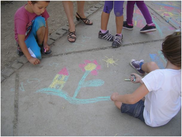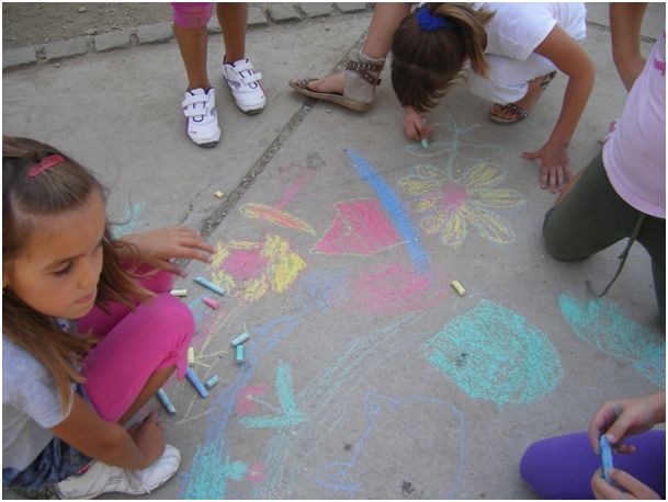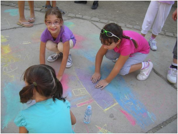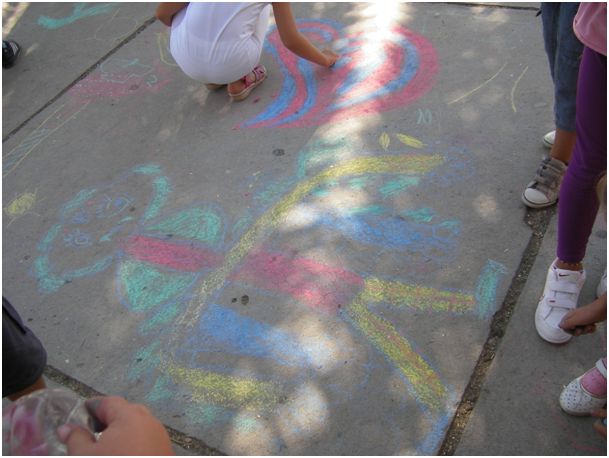 Naši prvaši uz pomoć 2.b razreda su taj tjedan obilježili različitim aktivnostima, a najviše radosti i kreativnosti iskazali su prilikom oslikavanja školskog dvorišta kredom