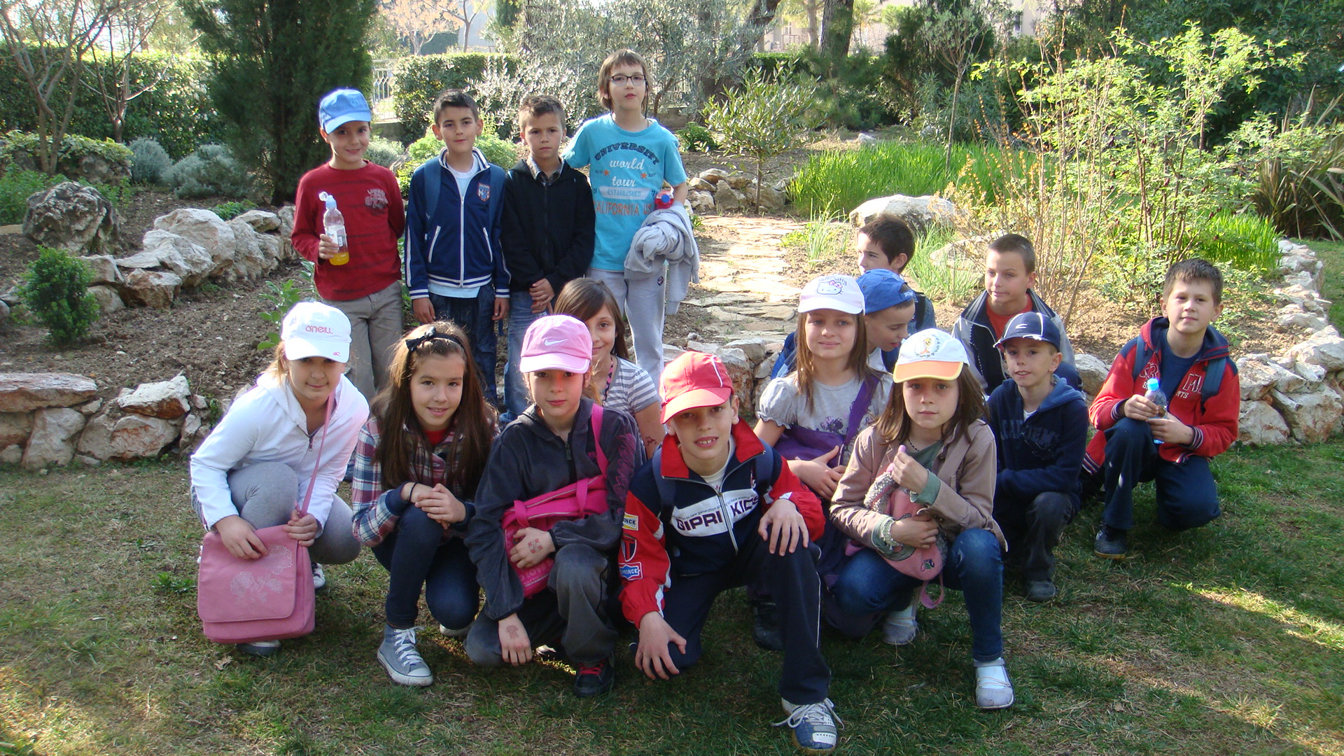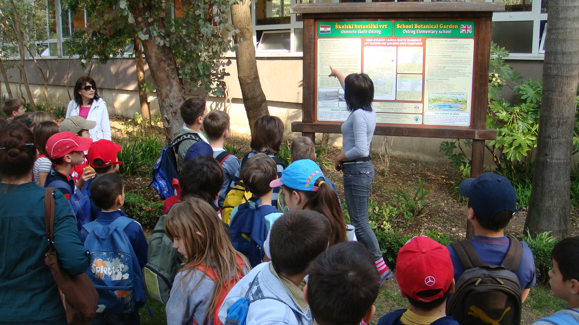 Stigli smo na odredište. To je Školski botanički vrt Osnovne škole Ostrog. Učenici su zadivljeno promatrali različito, lijepo odnjegovano bilje. Bilo je mnogo pitanja i uzbuđenih povika.