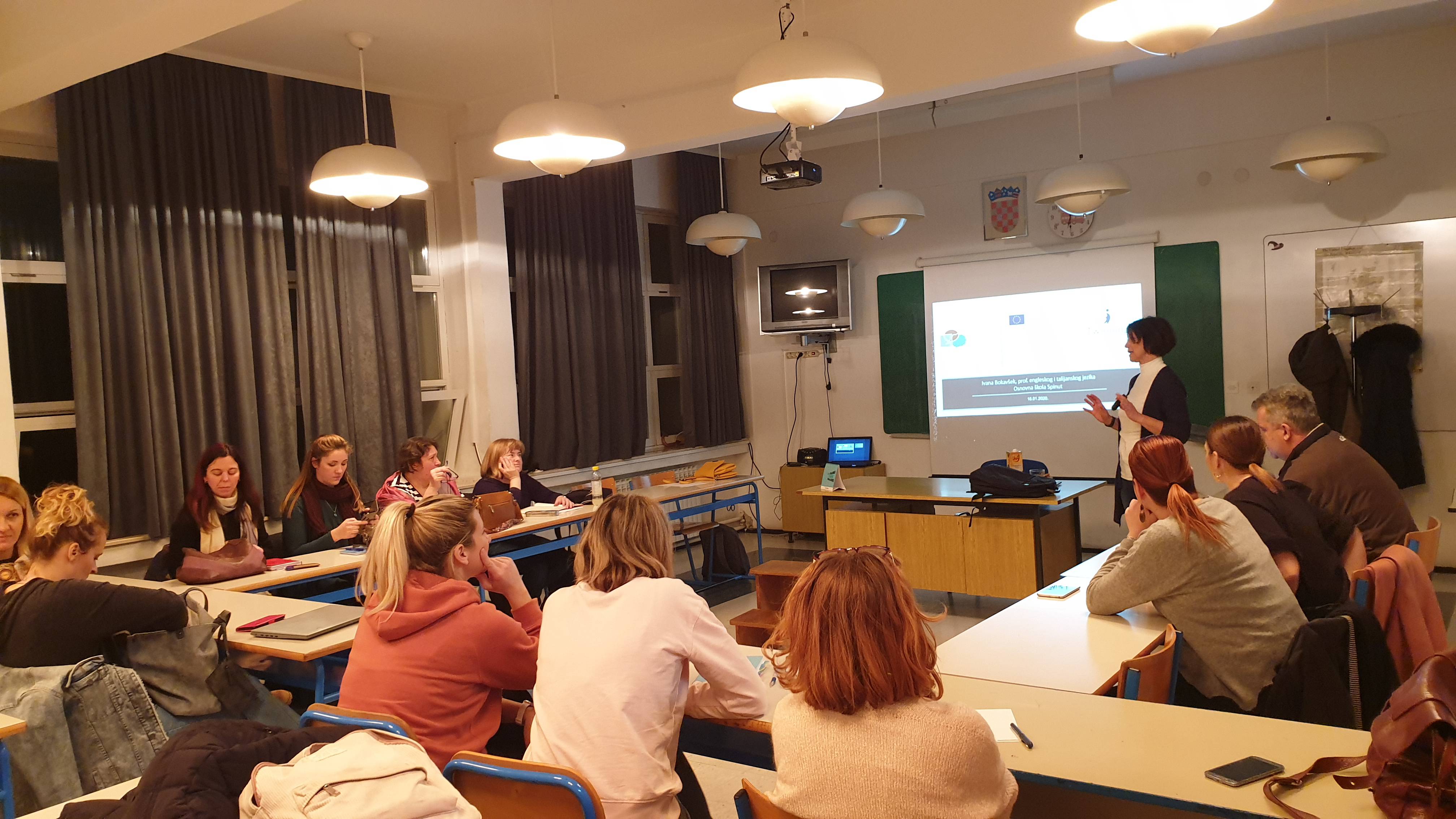 Dana 16.1.2020. u našoj školi je, na poziv učitelja, kolegica Ivana Bokavšek iz OŠ Spinut održala seminar s temom Priprema Erasmus+ projekata. Kolegica Bokavšek je, kao iskusna koordinatorica i učesnica mnogobrojnih međunarodnih projekata, u dvosatnom predavanju našim nastavnicima i učiteljima pokušala približiti Erasmus+ projekte, objasniti način pripreme i prijave projekata te je odgovorila na mnoštvo pitanja koja su naši nastavnici imali. Ovo je tek jedan u nizu pripremnih seminara koji će naše nastavnike obučiti kako da što kvalitetnije i uspješnije napišu i realiziraju europske projekte, a sve u cilju da našu školu još više približimo europskim standardima te damo našim učenicima mogućnosti koje takvi projekti pružaju. Ivona Jerković, prof. .jpg)