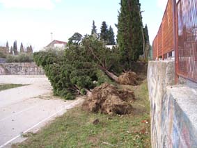 Tridesetak borova i čempresa, zasađenih još u doba gradnje škole, nisu izdržali snažni nalet orkana.