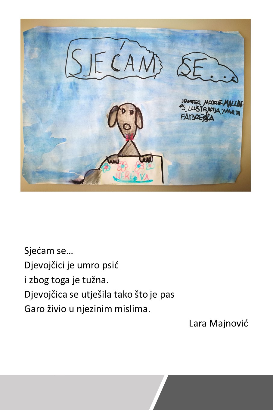 Učiteljica po struci, književnica Niveska Juraga-Kovačev predstavila nam je jednu od svojih knjiga za djecu, zbirku priča Pegula, o malom i veselom učeniku koji nam pripovijeda o mnogim smiješnim pegulama u svom životu, u školi, u ljubavi, prijateljstvu i obitelji, kroz koje zapravo uči ono najvažnije o ljudima, osjećajima, međuljudskim odnosima, životnim vrijednostima i sebi, zbog čega s vremenom postaje sve pametniji i bolji.