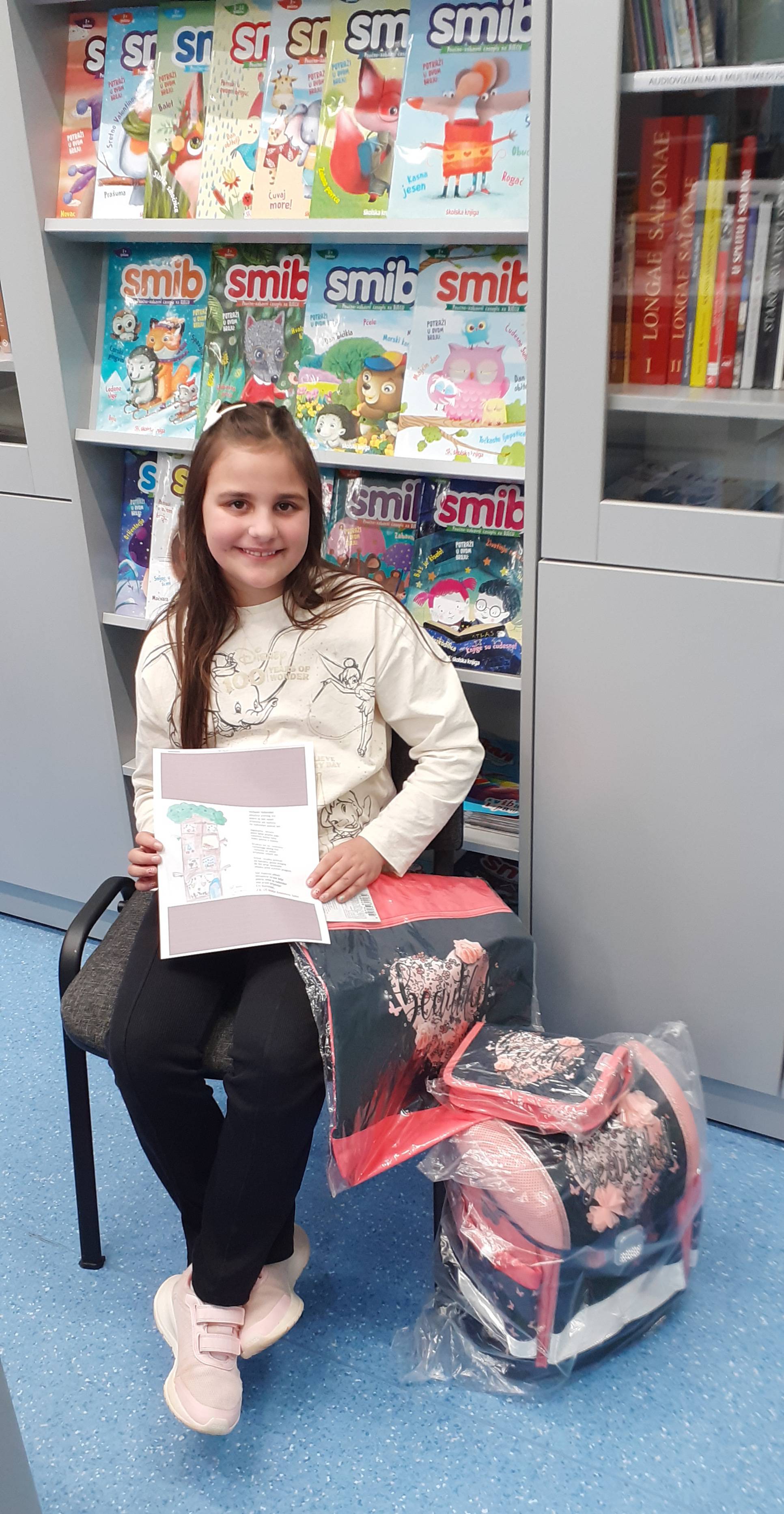 U ovo vrijeme darivanja u našu je školu stigao jedan divan dar i to godišnja nagrada dječjeg časopisa Smib, učenici 2.b razreda Eni Banovac, za njezin likovno-literarni rad. Eni se trudila, bila je vrijedna i nacrtala crtež i napisala pjesmicu za nagradni natječaj o stanarima iz mašte, pa poslala svoje djelo na adresu izdavača Školska knjiga. Njezin rad toliko se svidio povjerenstvu da ga je izabrao između gotovo tisuću pristiglih radova iz cijele zemlje, te je Eni postala jedna od samo nekoliko djece koja su ove godine dobila najvrjednije priznanje tog kvalitetnog časopisa.