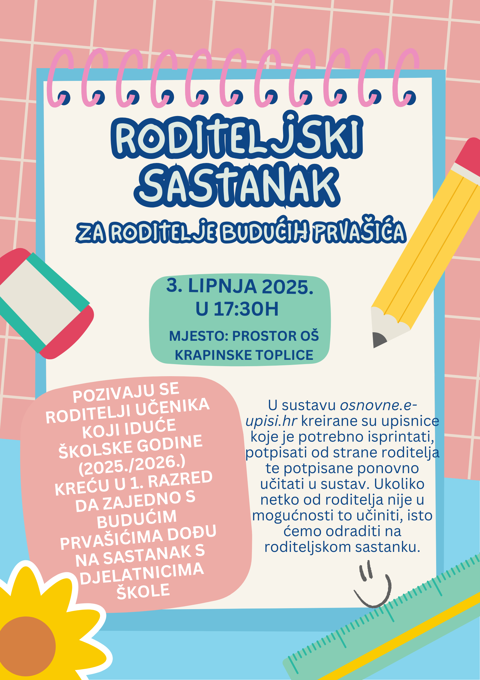 U nastavku se nalazi poziv na roditeljski sastanak za roditelje budućih učenika 1. razreda.