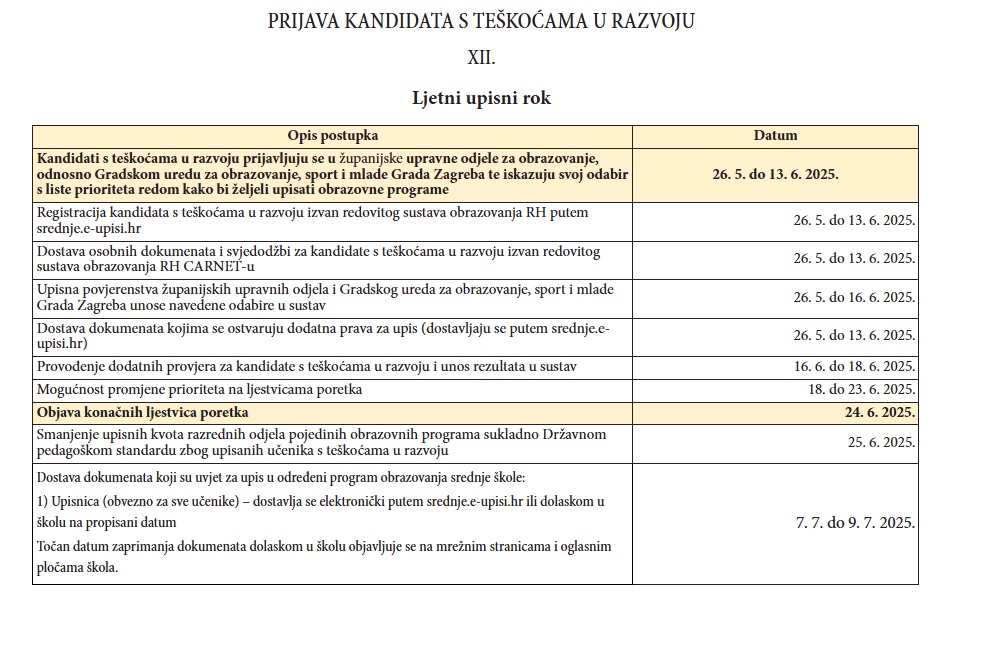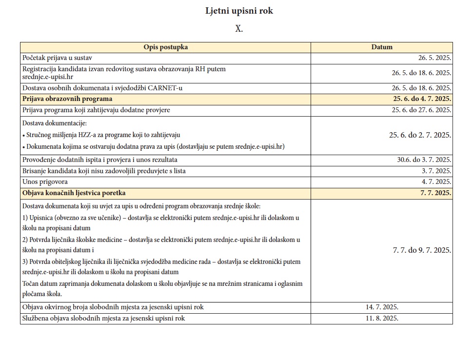 u nastavku možete pronaći važne datume vezane uz ljetni upisni rok u srednju školu