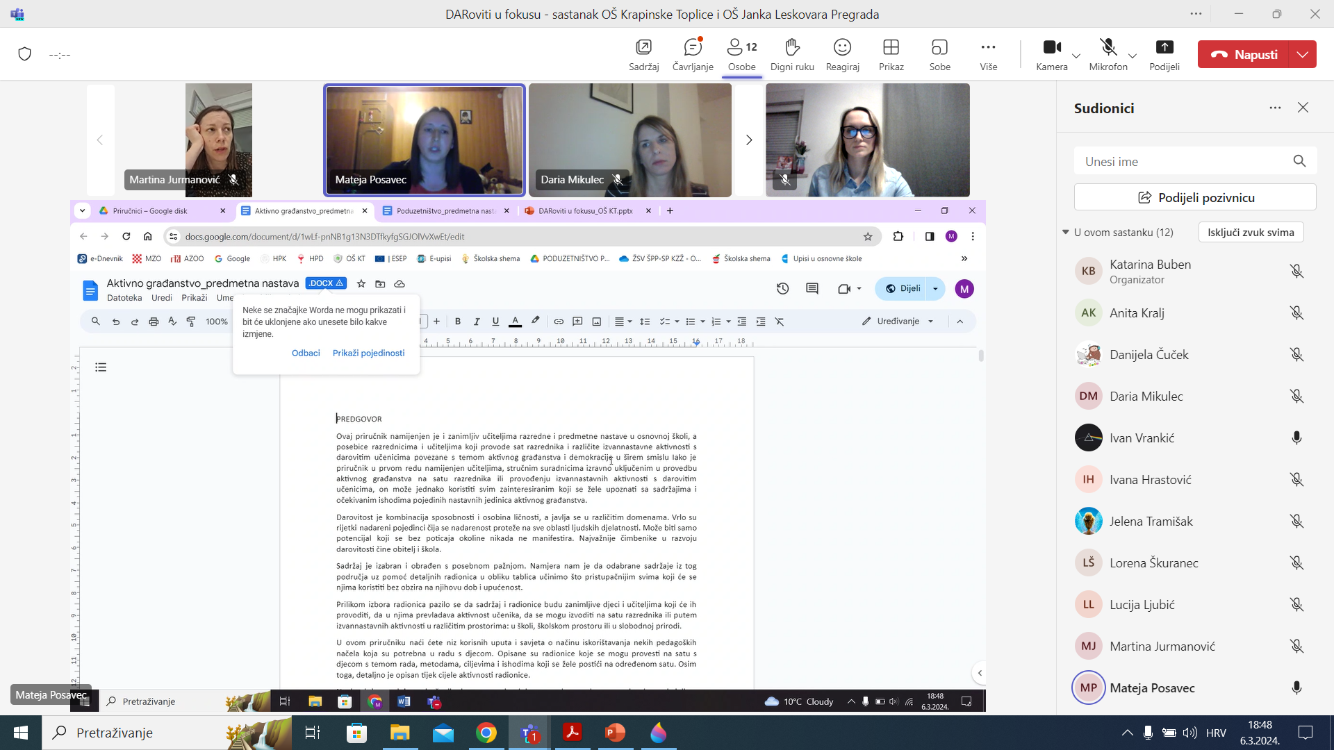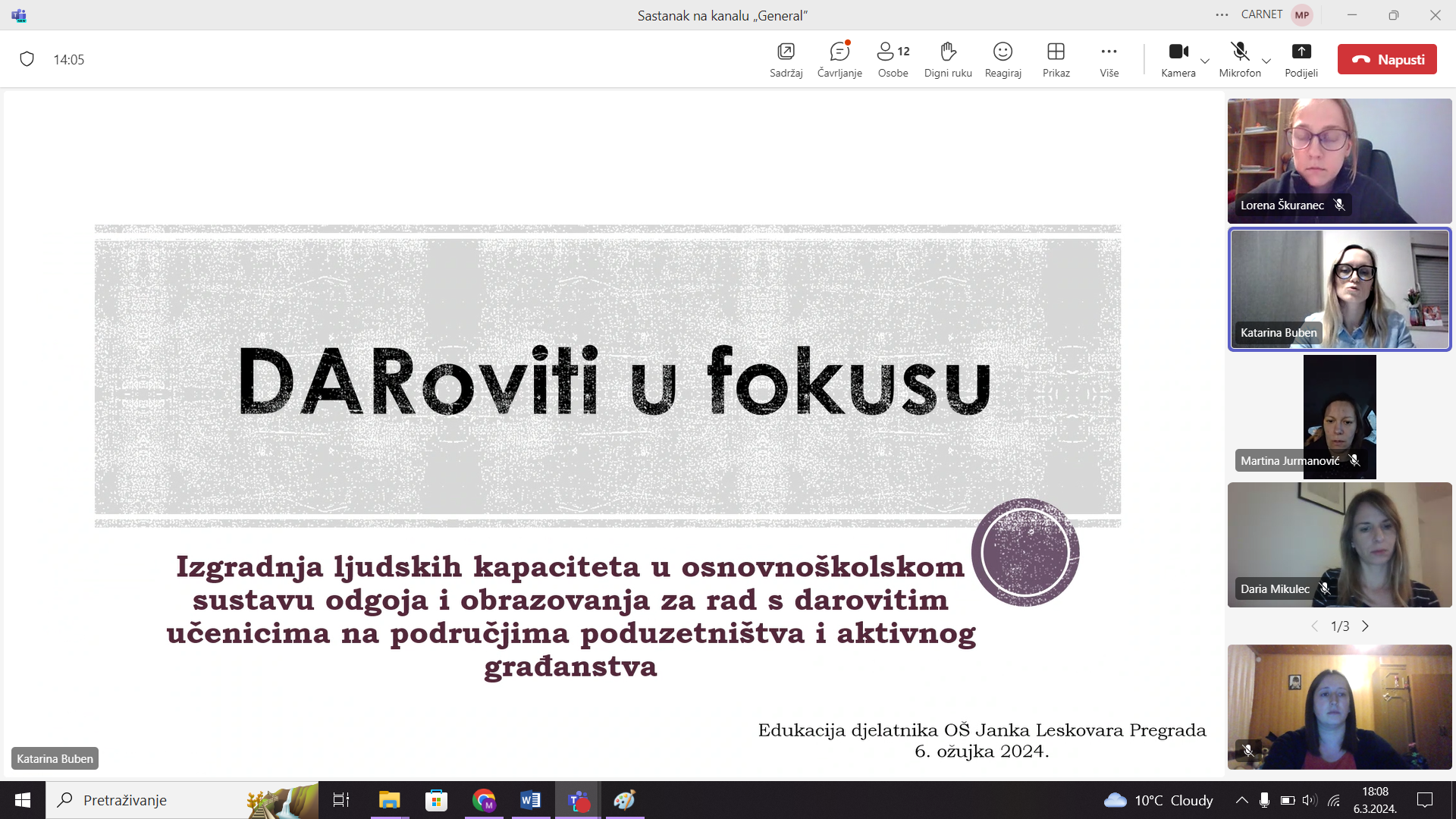 Edukacija na kojoj su sudjelovale učiteljice i stručne suradnice OŠ Janka Leskovara Pregrada održana je 6. ožujka 2024. putem platforme Teams.