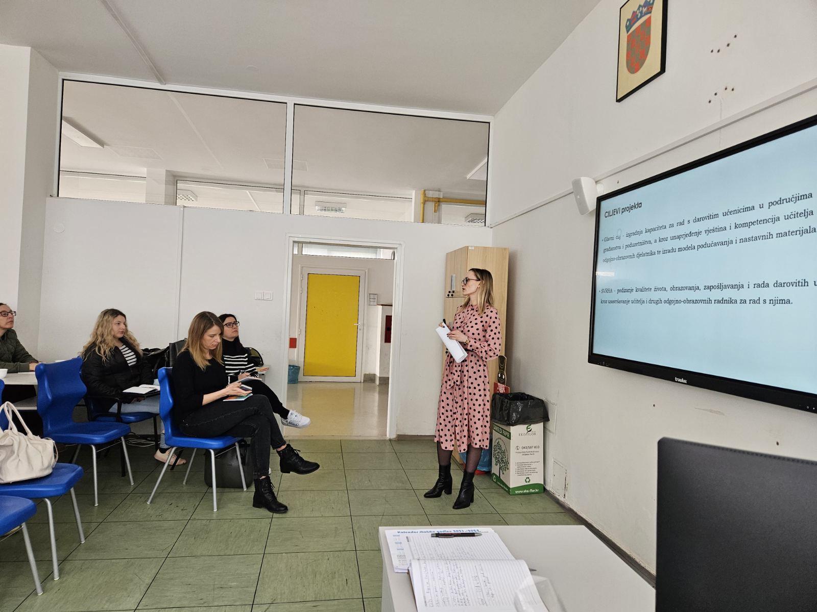 U sklopu projekta DARoviti u fokusu - izgradnja ljudskih kapaciteta u osnovnoškolskom sustavu odgoja i obrazovanja za rad s darovitim učenicima na područjima poduzetništva i aktivnog građanstva, održane su edukacije za djelatnike naše škole te za djelatnike Osnovne škole Janka Leskovara Pregrada.