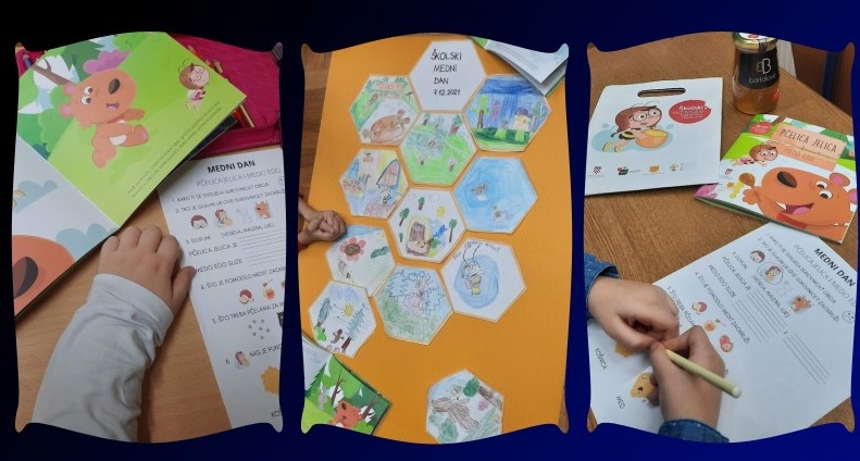 Školski medni dan u 1.i razredu obilježen je kao integrirani dan. Za potrebe obilježavanja ovog dana Ministarstvo poljoprivrede osiguralo je svakom učeniku jednu teglu meda te promotivne slikovnice i brošure. Slikovnica Pčelica Jelica i medo Edo poslužila je i na satima hrvatskog jezika koju su učenici slušali s oduševljenjem. Ova tema, osim na učenje o pčelama, potaknula je učenike i na kreativno stvaralački rad te su u okviru sata likovne kulture izradili vlastitu slikovnicu o medu.