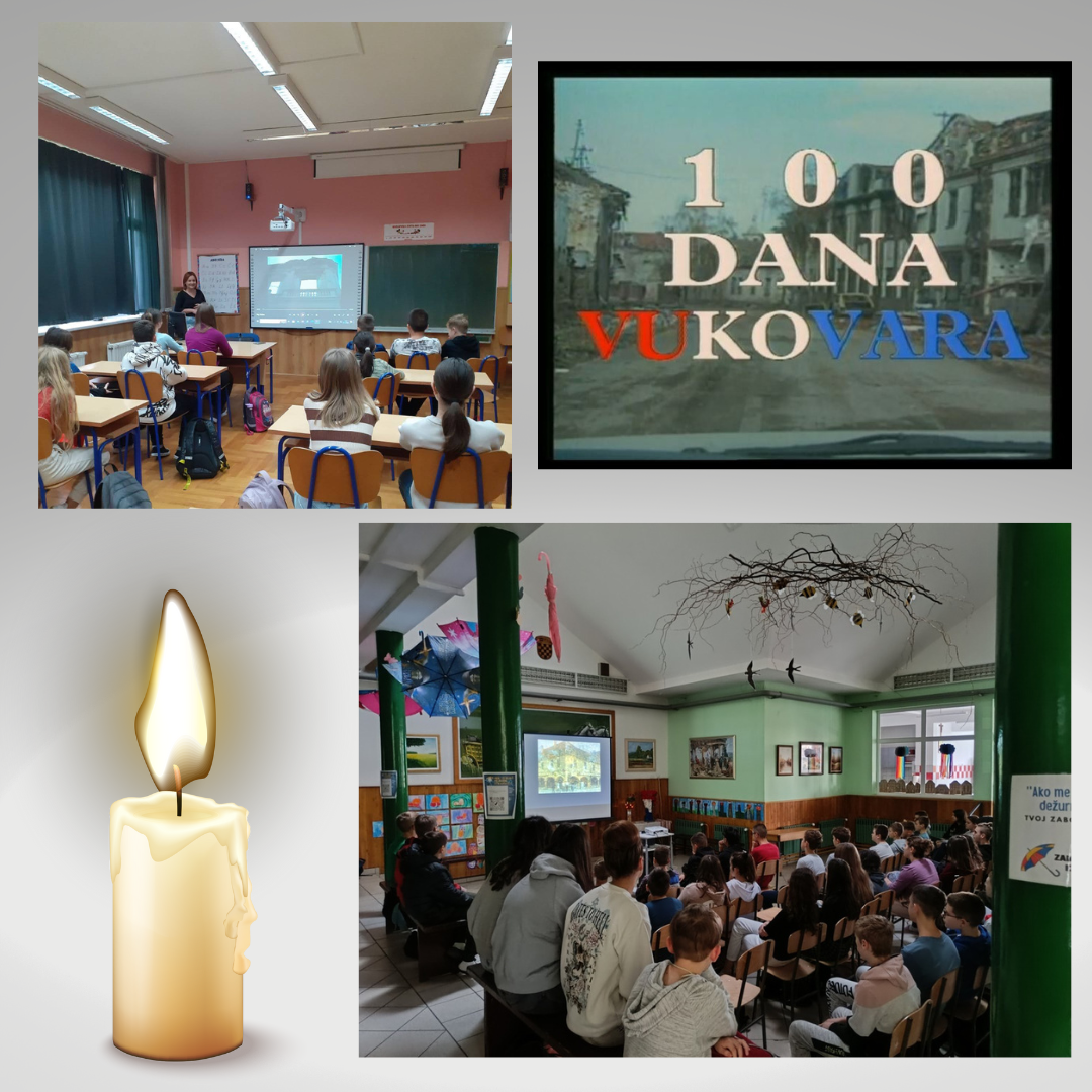 Učenici predmetne nastave gledali su prigodni dokumentarni film 100 dana Vukovara. Film je snimljen 1991. godine i opisuje junačku obranu stanovnika Vukovara te okrutno i nemilosrdno ponašanje agresora koji je napadao Vukovar. Ova priča o gradu heroju bila je inspiracija za sve kasnije filmove o Vukovaru. Minutom šutnje i paljenjem svijeća odali smo počast svim žrtvama Vukovara, Škabrnje i Domovinskog rata. Vukovar - grad heroj i grad heroja. Neka se nikad ne zaboravi!