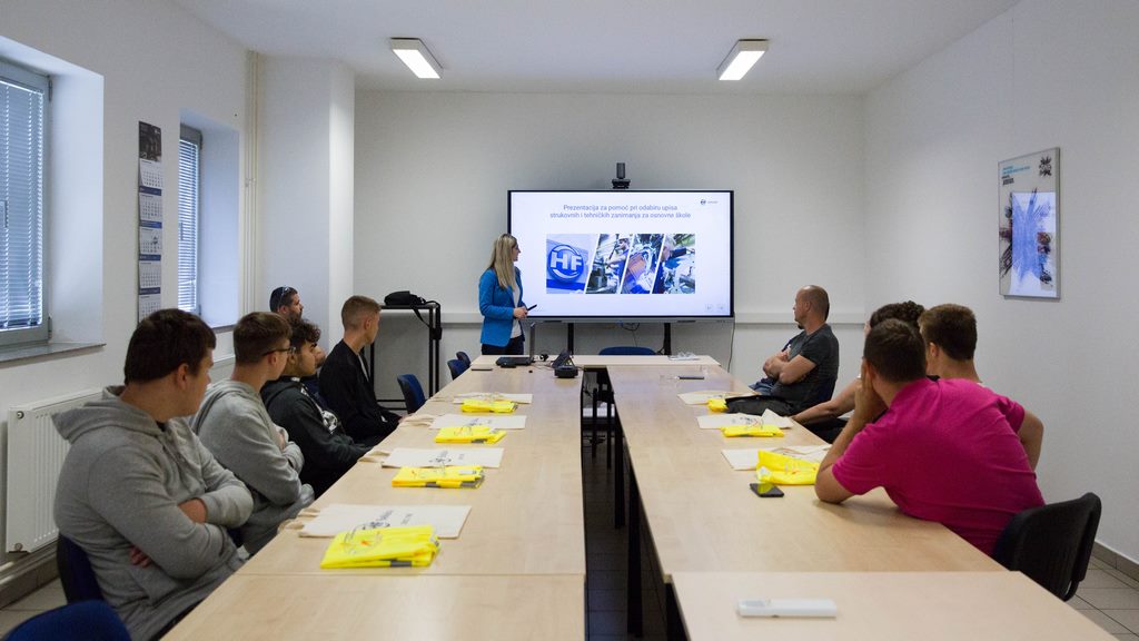 Posjet je organiziran radi motiviranja učenika za upisivanje srednjoškolskih zanimanja koja su potrebna njihovom radu. U tvornici nas je srdačno dočekala Ana Vuković, referentica ljudskih potencijala, koja je zajedno s kolegom Mladenom Matanovićem, voditeljem CNC programera, održala kratku prezentaciju u kojoj su predstavljena strukovna zanimanja. Nakon prezentacije obišli smo odjel strojne obrade, zavarenih konstrukcija, montaže i trening centar u kojem se provodi praktična nastava. Tijekom obilaska učenici su se pobliže upoznali s djelatnošću i proizvodnjom same tvrtke te su uživo mogli vidjeti buduća potencijalna radna mjesta. Radujemo se budućoj suradnji s tvrtkom HF i vjerujemo da će neki naši učenici jednog dana postati njihovi djelatnici.