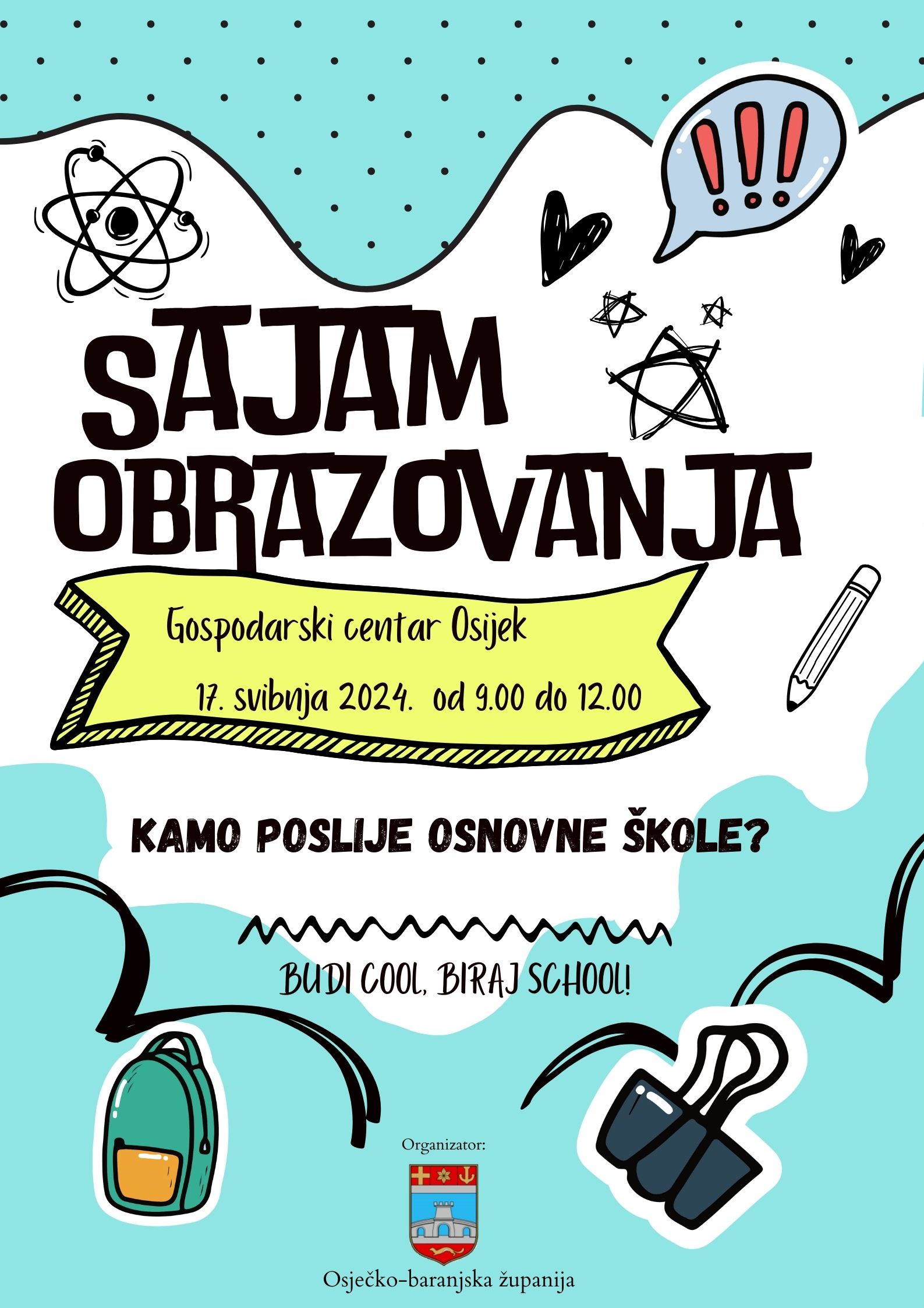 Manifestacija "Sajam obrazovanja“ održat će se u petak, 17. svibnja 2024. godine, od 9:00 do 12:00 sati u prostoru Gospodarskog centra u Osijeku, Gospodarska zona 10.