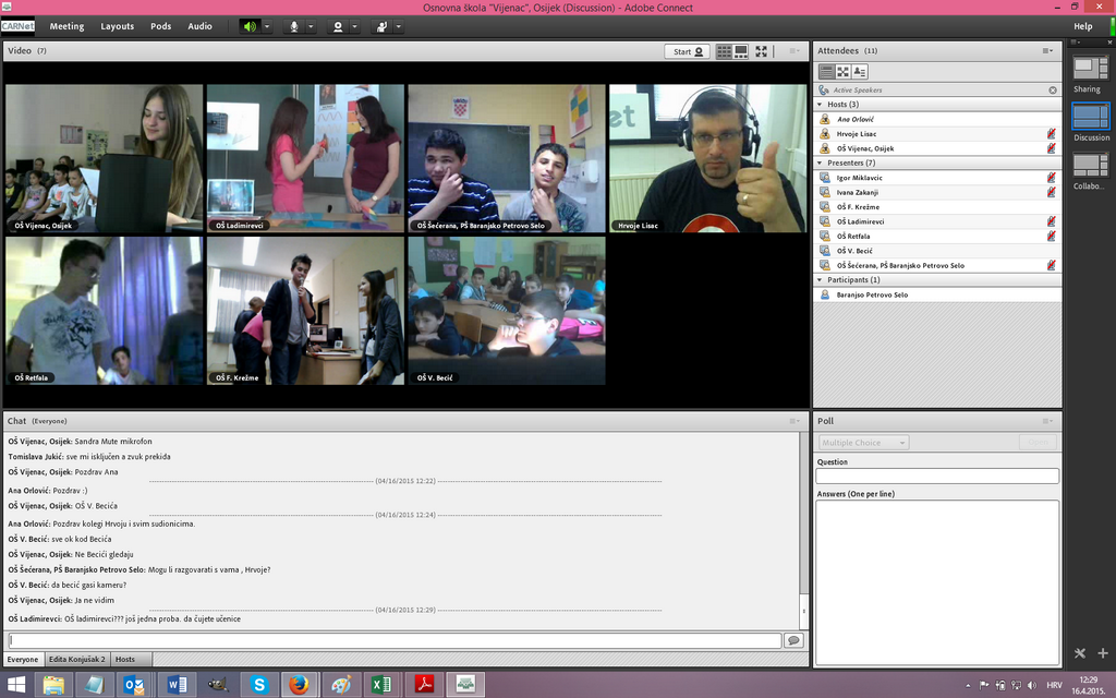 Uz pomoć tehnologije bazirane na svjetlosti iz škola udaljenih i više od 30 km u isto vrijeme nastavni sat pratilo je 160 učenika. Aktivno su sudjelovali učenici OŠ Vijenac (mentorica: Tanja Paris), OŠ Retfala (mentorica: Tomislava Jukić), OŠ Ladimirevci(mentor: Violeta Kardoš), OŠ Šećerana (PŠ Baranjsko Petrovo Selo - mentor: Edita Konjušak), OŠ Franje Krežme Osijek (mentor: Ivana Zakanji) te kao promatrači učenici OŠ Vladimira Becića Osijek (Sandra Bagarić), OŠ Bilje (Marija Špiranec) i OŠ Mladost Osijek (Smiljana Roguljić).