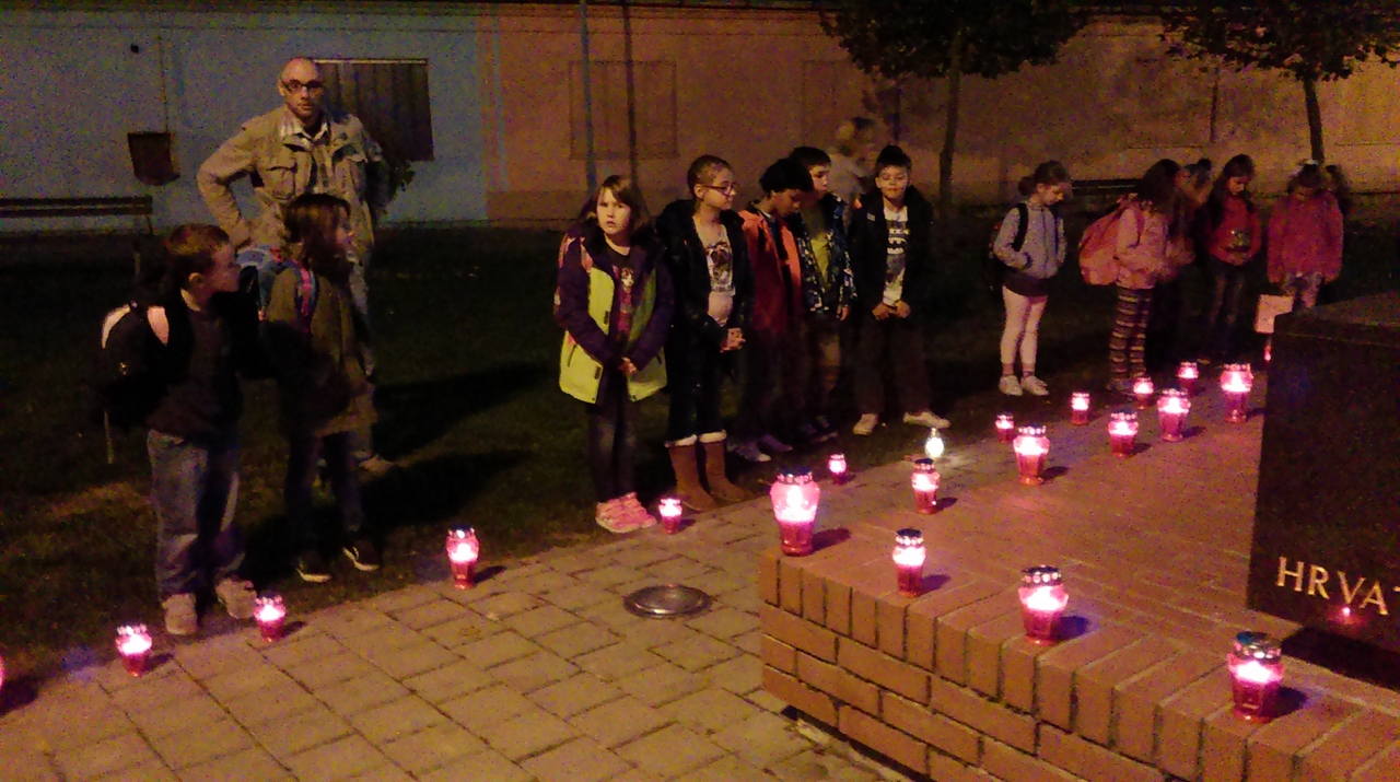 Učenici Razredne nastave OŠ Ladimirevci su na trgu Fabijana Šovagovića u Ladimirevcima zapalili svijeće i pomolili se za sve žrtve herojskog grada Vukovara. 18.11.2015.