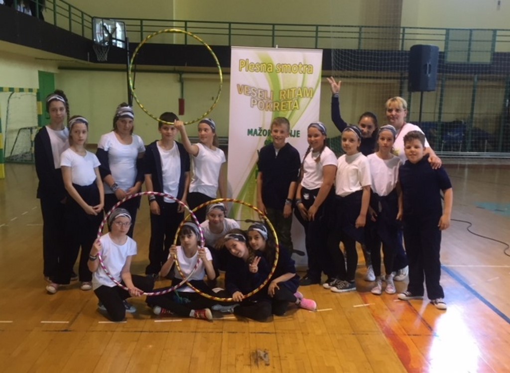 Mažoretkinje grada Valpova u suradnji s Društvom “Naša djeca”grada Valpova i našom školom su u subotu 28.travnja 2018.organizirale 4.plesnu smotru “Veseli ritam pokreta” i smotru likovnih radova povodom Međunarodnog dana plesa u Gradskoj sportskoj dvorani u Valpovu.