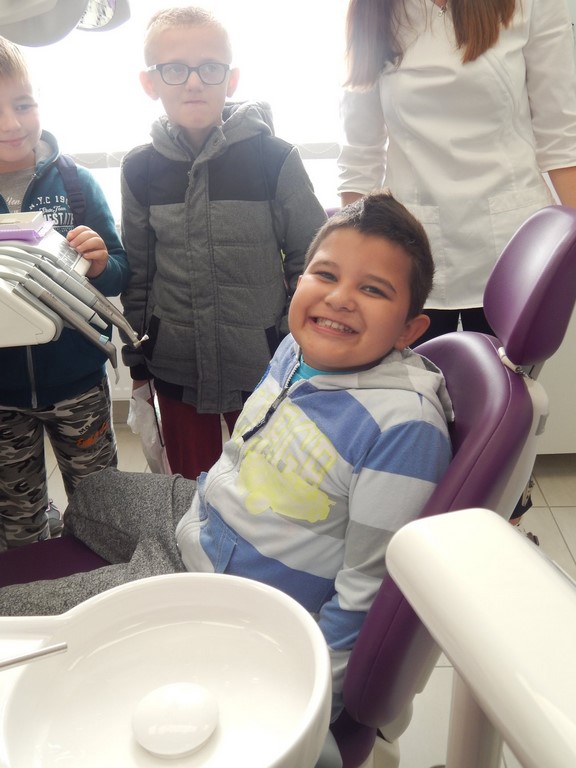 Nakon toga posjetili smo stomatološku ordinaciju dr. Bakaran koja nam je vrlo jasno i ljubazno objasnila zašto je bitno održavati higijenu zuba i što će nam se dogoditi ako ne pazimo na zdravlje naših zuba. Dobrovoljcima je pregledala zube i pokazala nam je pravilan način pranja zubi. Svojim osmjehom nam je pokazala da zubar nije „bauk“ te su se neki učenici odmah upisali kod nje za redovite pacijente.