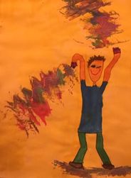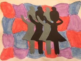Luka Lončar, 4.r.”Razigrani ritam boja i likova u pokretu”, OŠ Zvonimira Franka, Kutina, mentor: Vesna Košak