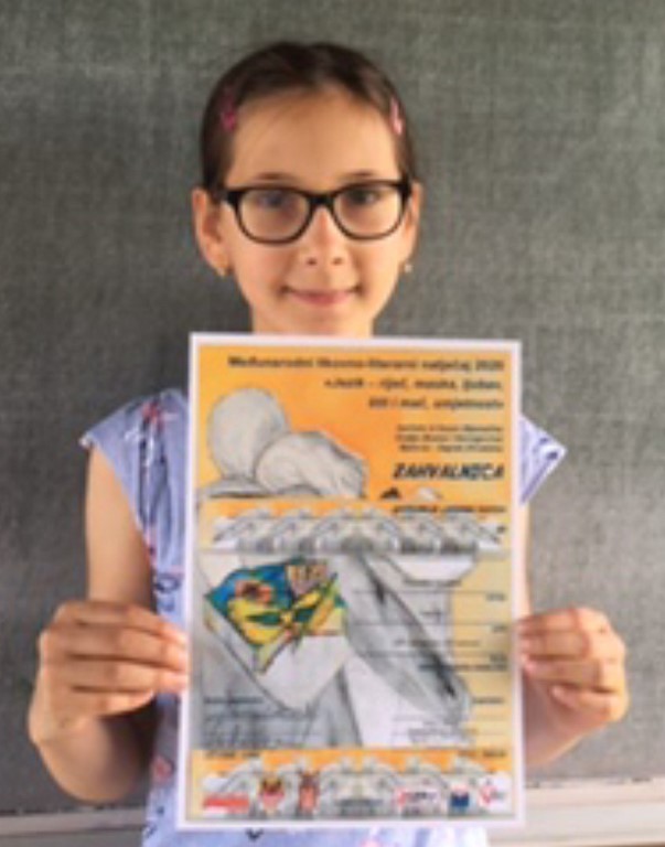 Sjajne vijesti obilježile su kraj nastavne godine u našoj školi. Klara Vidaković, učenica 2. razreda Područne škole Ivanovci pod mentorstvom svoje učiteljice Ljiljane Marinjak ostvarila je 1. mjesto na Međunarodnom likovno – literarnom natječaju „Jezik – riječ, maska, ljubav, štit i mač“.