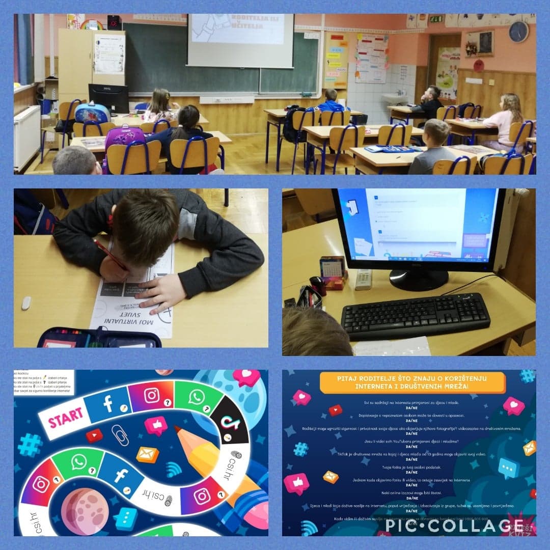 Ove godine su učenici 2.i razreda ispunjavali listić MOJ VIRTUALNI SVIJET kako bi osvijestili u kojim sve prilikama koriste internet. Materijali iz e- udžbenika Sigurnost djece na internetu (Pet za net) potaknuli su ih na razgovor o komunikaciji i pristojnom ponašanju u virtualnom svijetu. Pogledali su kratke filmiće udruge Korak po korak „Cyberbullying: postoji izlaz!“ te Pristojno ponašanje na internetu Škole za život. Nakon razgovora o tome što su vidjeli i zaključili, učenici su ispunili kviz kako bi provjerili svoje znanje o sigurnosti i pristojnom ponašanju na internetu.