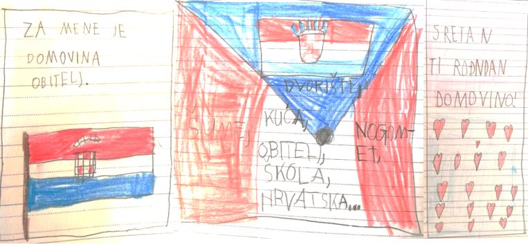 Učenici 1. razreda izrađivali su čestitke svojoj domovini za rođendan i izražavali što je za njih domovina.