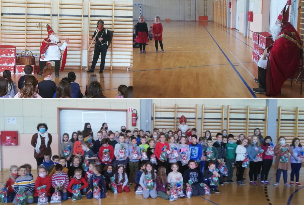 Sveti NIkola nije nas zaobišao ni ove godine. Veselo, s pjesmom i recitacijama učenici od 1. do 4. razreda pozdravili su Svetog Nikolu i njegovog pratitelja Krampusa. Radosno se družio s djecom i učiteljima te im uručio slatke paketiće.