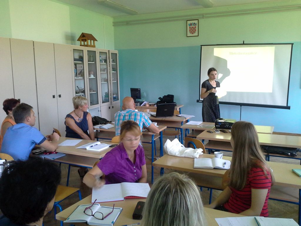 Na kraju ljetnog odmora učitelji su se aktivno uključili u edukacije u školi. U suradnji sa Školskom knjigom u školi je gostovala profesorica Dinka Juričić koja je održala dva nadahnuta i motivirajuća predavanja. Učitelji su imali priliku upoznati suvremene pristupe obrazovanju poput obrnute učionice i suradničkog učenja. Zanimljiva tema bila je upoznavanjem kako povećati motivaciju učitelja i učenika za rad s ciljem postizavanja boljih rezultata učenja i stjecanja najkorisnijih vještina koje će im koristiti u životu. Radionicu suradničkog učenja s primjenom jigsaw puzzle metodom učenja prenijela je kolegica Ljiljana Žegrec kao jednu od radionica na kojoj je sudjelovala ovog proljeća u Strasbourgu na treningu za trenere Pestalozzi programa.