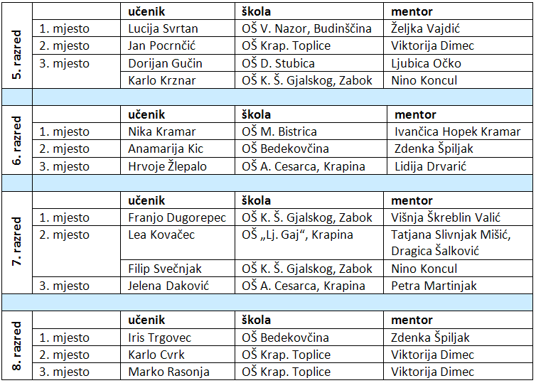Svim natjecateljima i njihovim mentorima iskrene čestitke na postignutim rezultatima.
