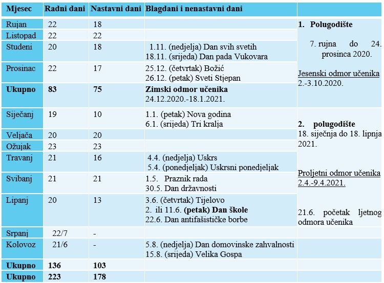 Temeljem članka 59. Statuta Osnovne škole Lijepa naša, Odluke o izmjeni odluke o početku i završetku nastavne godine, broju radnih dana i trajanju odmora učenika osnovnih i srednjih škola za školsku godinu 2020./2021. (MZO, 6.12.2020.) i Odluke župana Krapinsko-zagorske županije od 16.12.2020. godine, Školski odbor na 33. sjednici od 17.12.2020. god. donosi O D L U K U o izmjenama i dopunama Godišnjeg plana i programa rada za školsku godinu 2020./2021.